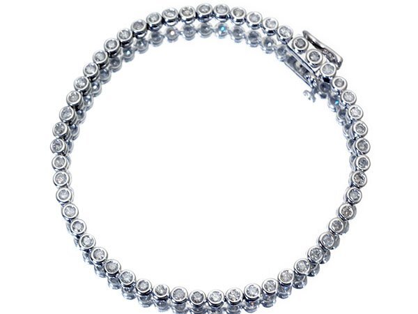 豪華なフルエタニティデザインで綺麗な輝き放つ天然ダイヤモンド総計2.00ctを素敵に宝飾した、高級K18WGフルエタニティブレスレットを1円から特別大放出致します!