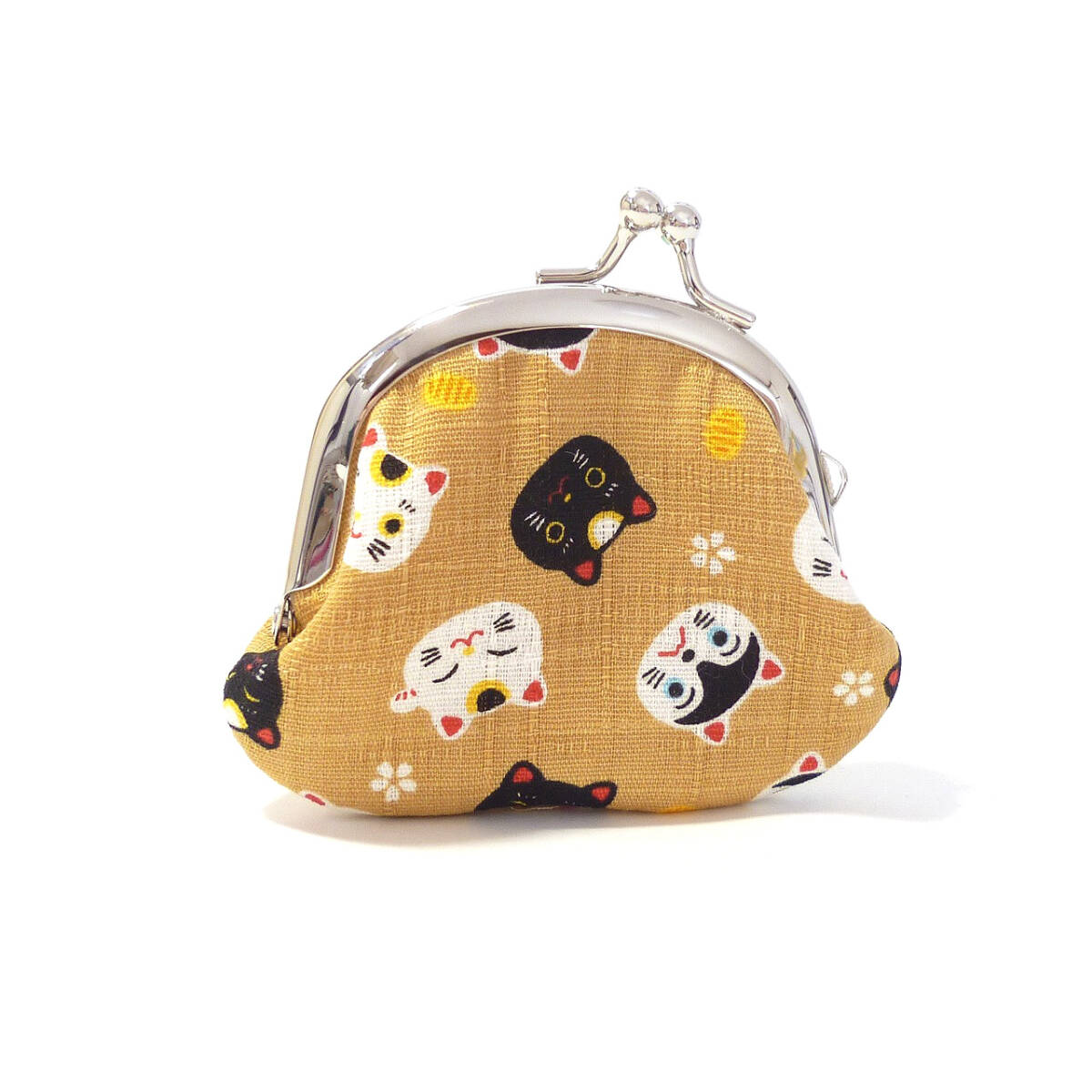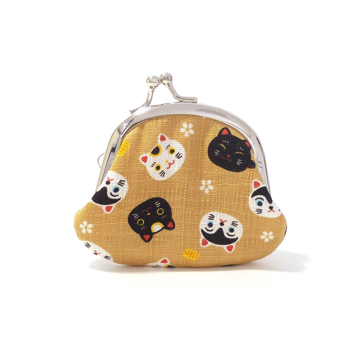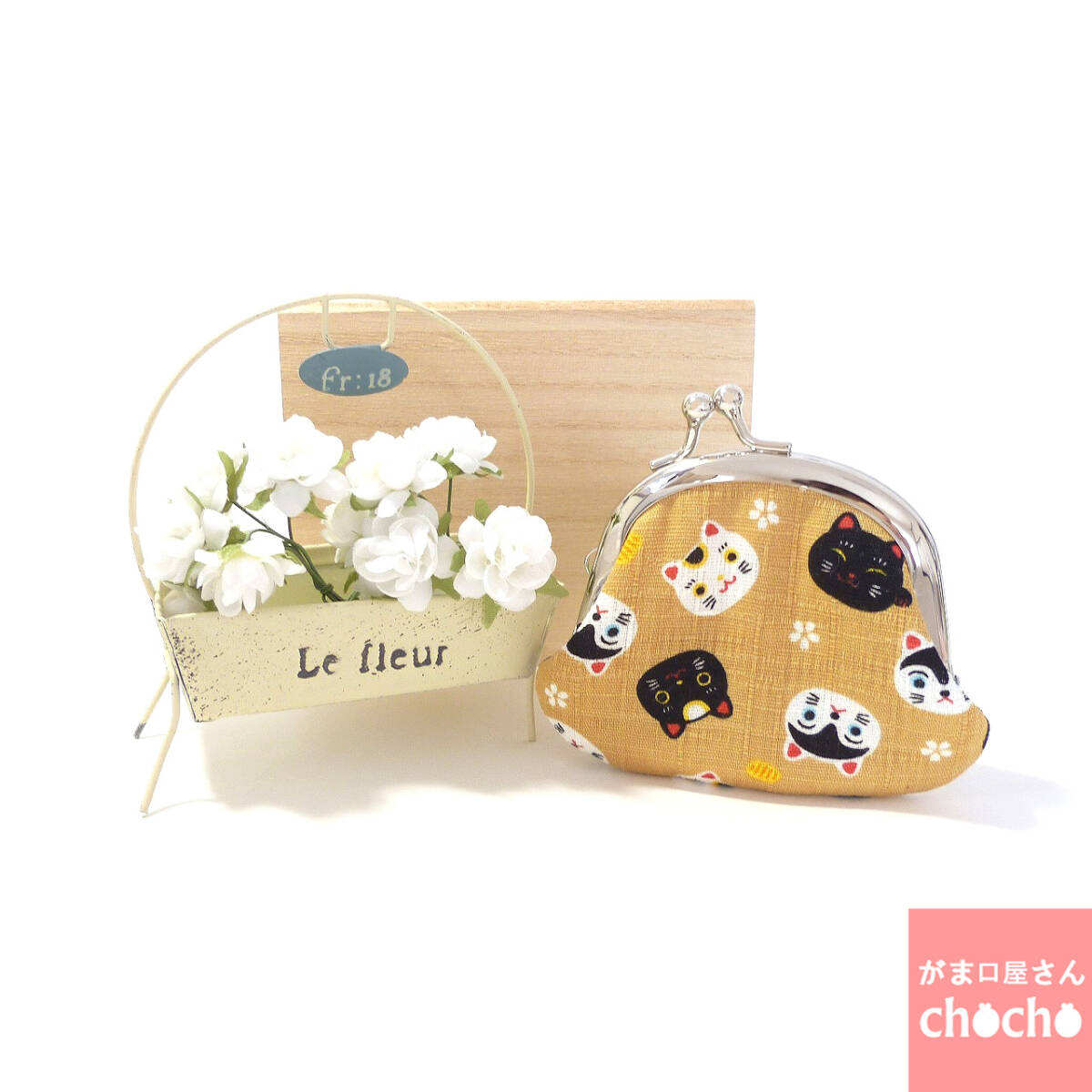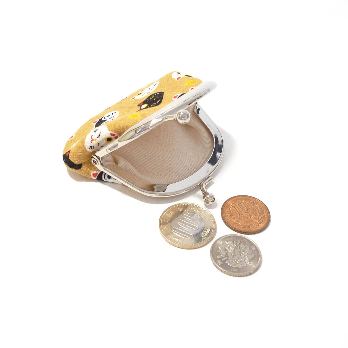 ミニ がま口小銭入れ 招き猫 ベージュ 猫柄 ネコ コインケース ハンドメイド G638