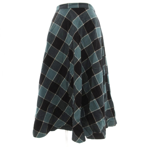 トゥービーバイアニエスベー To b. by agnes b. フレアスカート ロング マキシ 36 青 ブルー系 黒 ブラック チェック柄 /GV