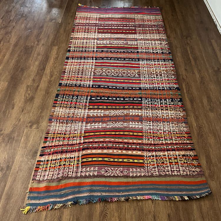 ★大型キリム★281×119cm アフガニスタン産 キリム トライバルラグ ハンドメイド ディスプレイ 店舗 什器 カーペット 02AEAKE251007012D