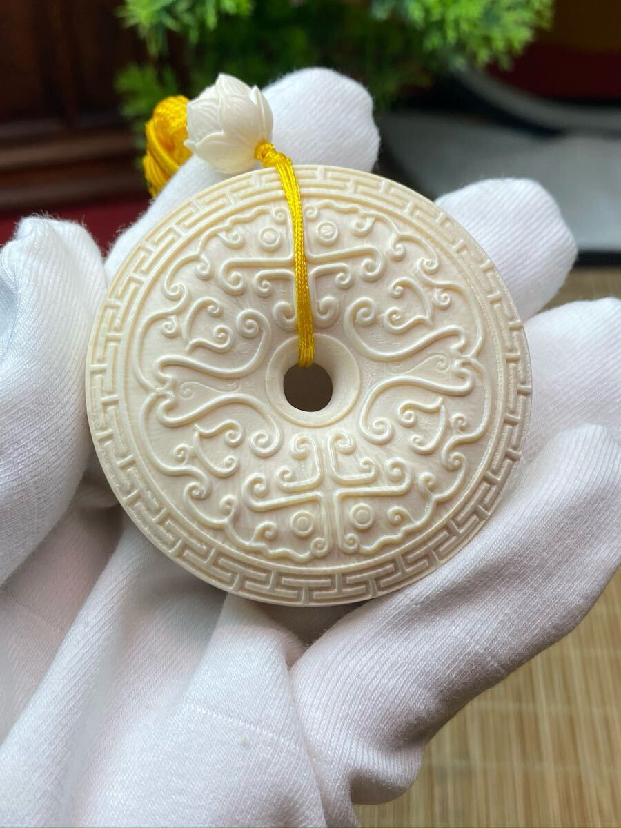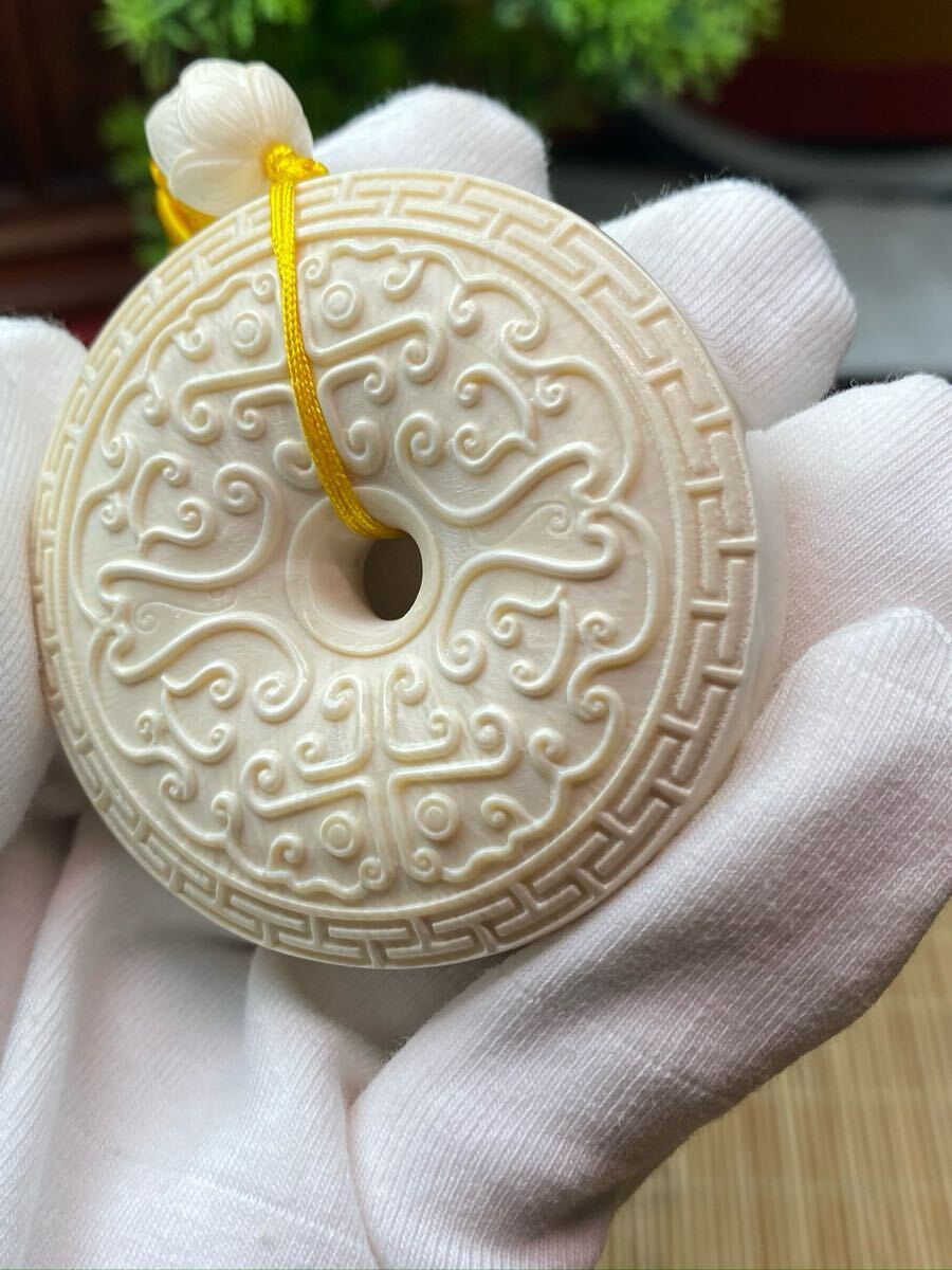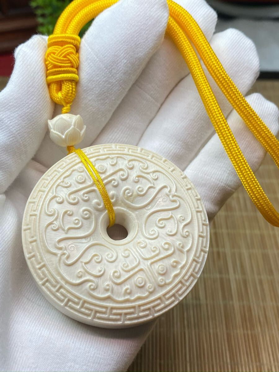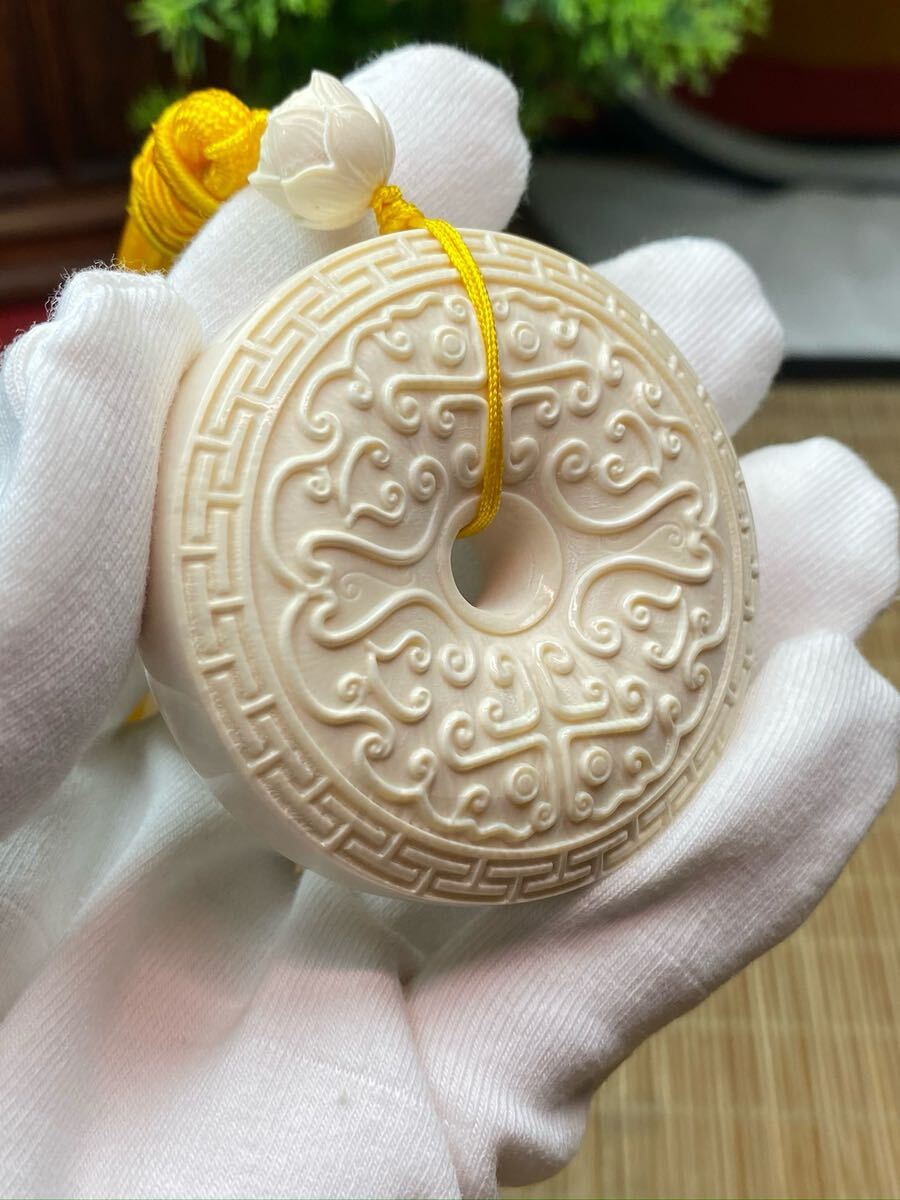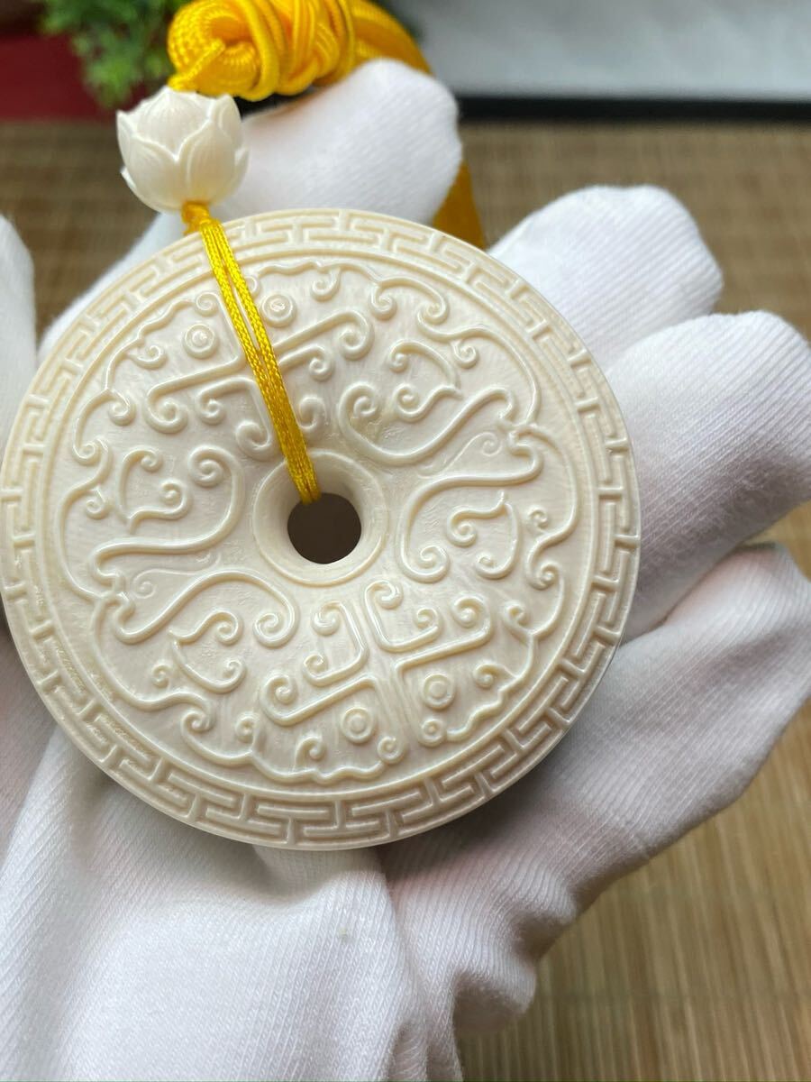商品名:天然マンモス牙美しい手作り彫刻 祥雲ドーナツ形 手握り物(63g)