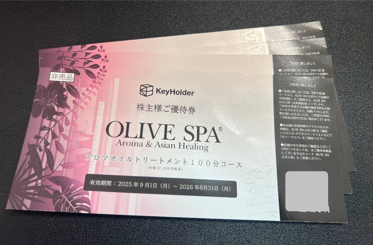 KeyHolder株主様ご優待券 オリーブスパ(アロマオイルトリートメント100分コース)1枚 キーホルダー 数量3