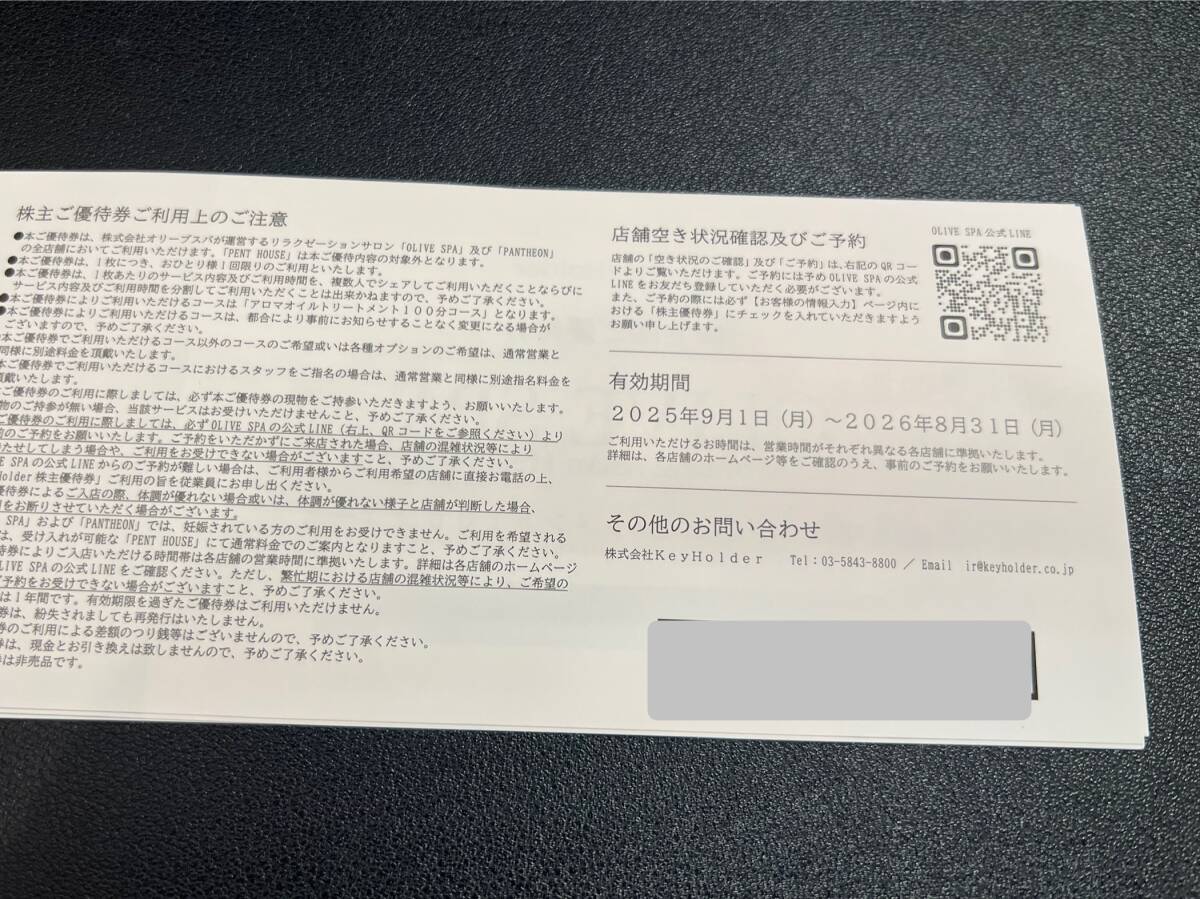 KeyHolder株主様ご優待券 オリーブスパ(アロマオイルトリートメント100分コース)1枚 キーホルダー