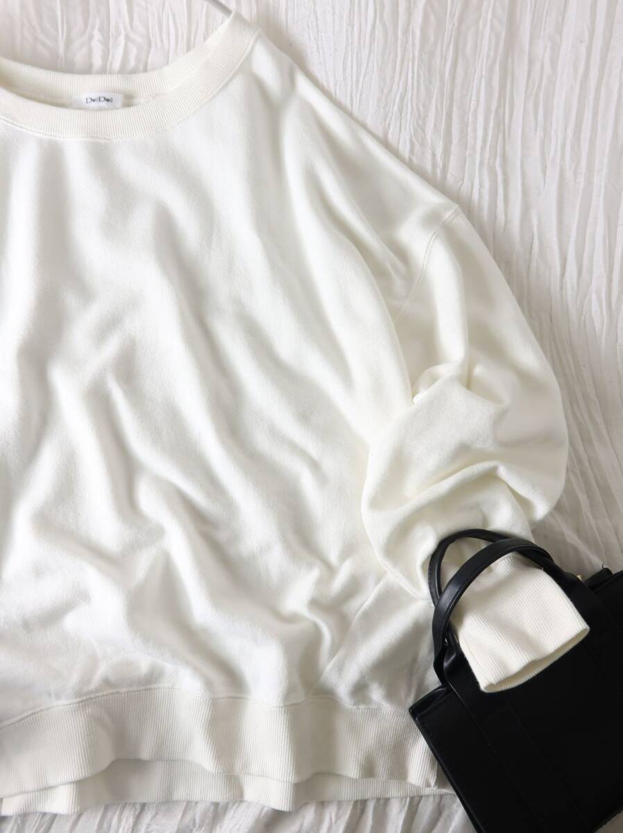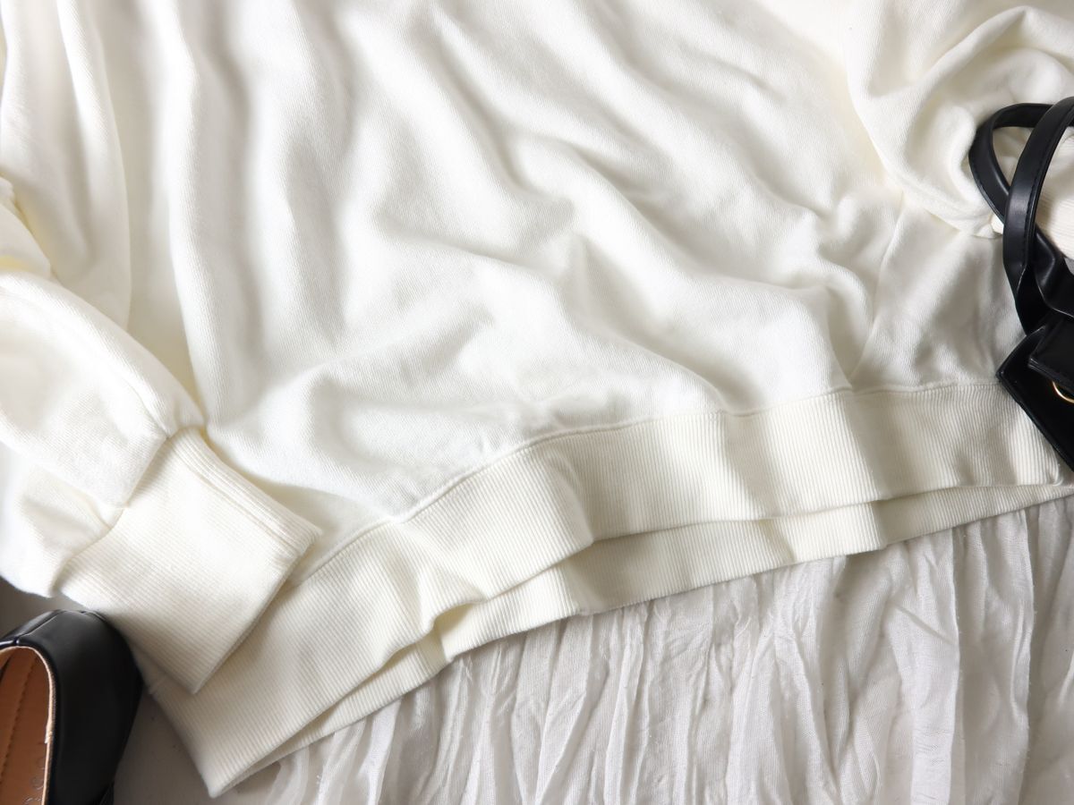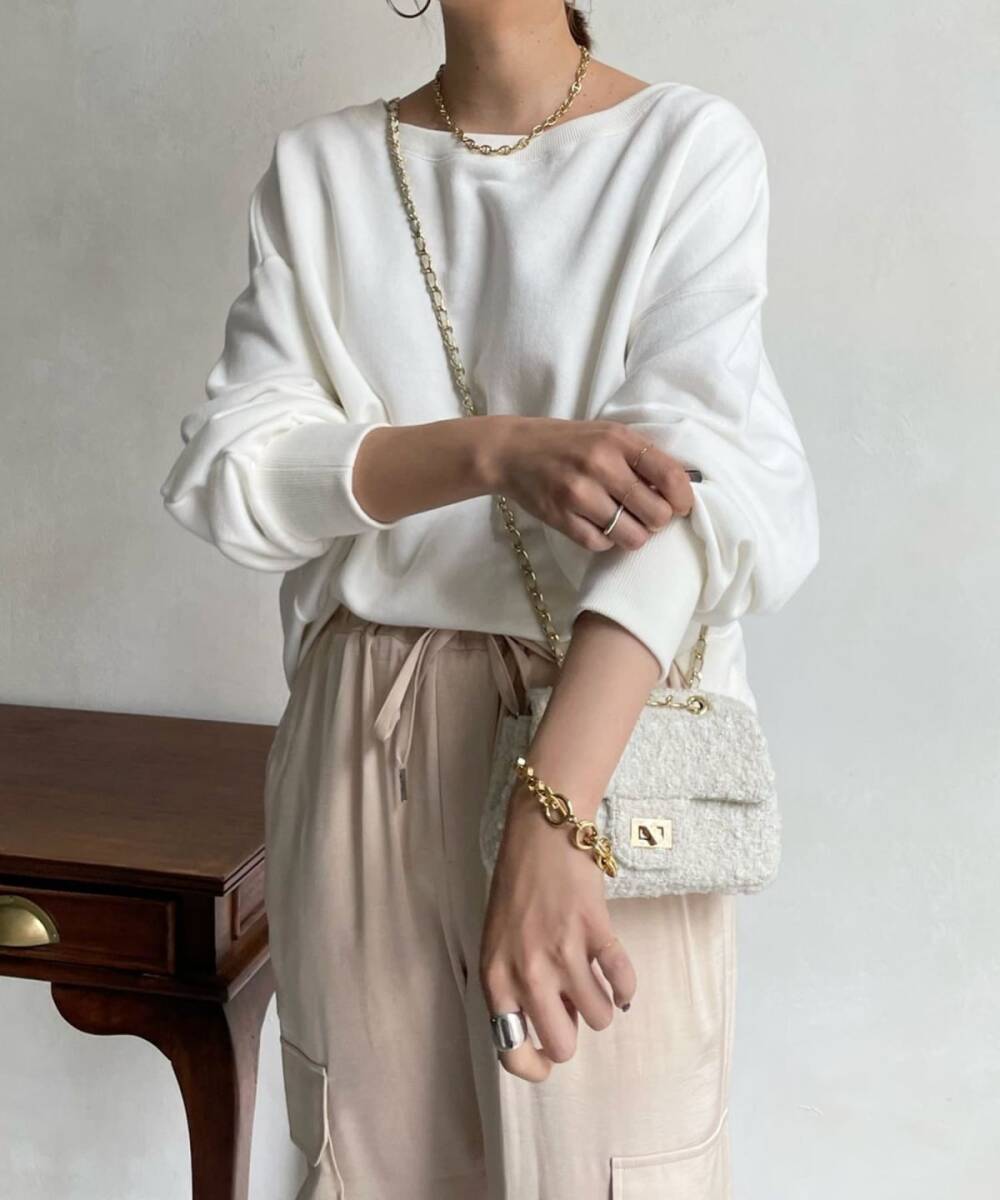すっきりと綺麗見えする、ネックラインのデザインが大人らしいスウェット。 拘りのシルエットが、シンプルさの中におしゃれさを見せつけるポイントに。 程よい厚みの生地感なので、ロングシーズン愛用できる1着です。 1枚着ではもちろん、身幅や袖周りも余裕のあるシルエットなので、季節に合わせてインナーにロングTシャツや、シャツを重ねたレイヤードコーディネートもおすすめです。