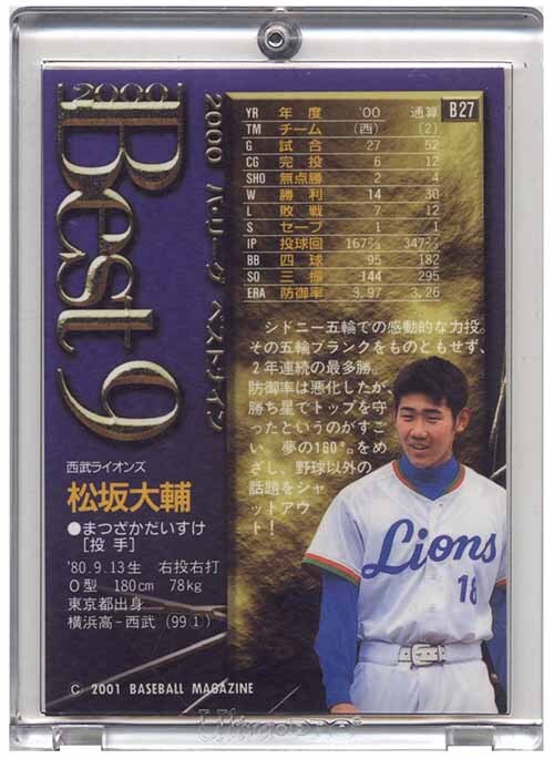 即決! 2001 BBM Best 9 #B27 松坂 大輔 挿入 3D カード