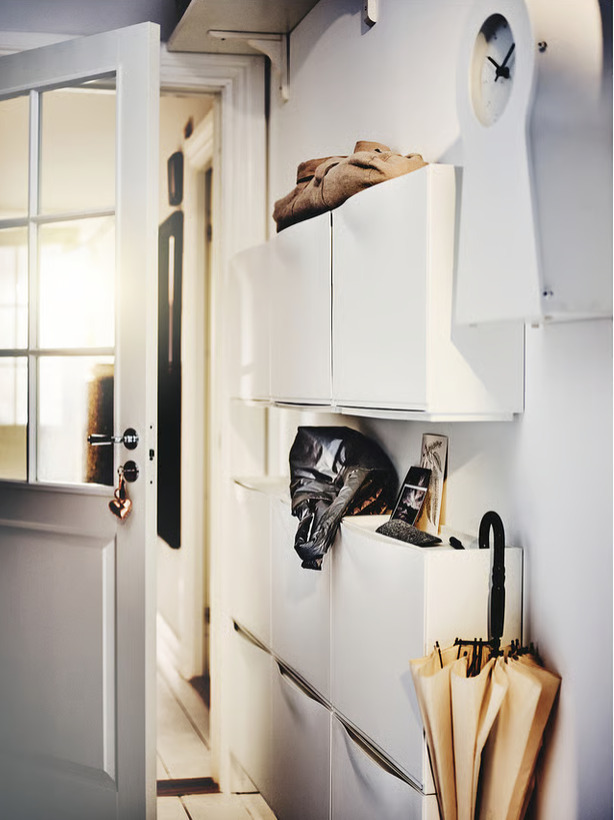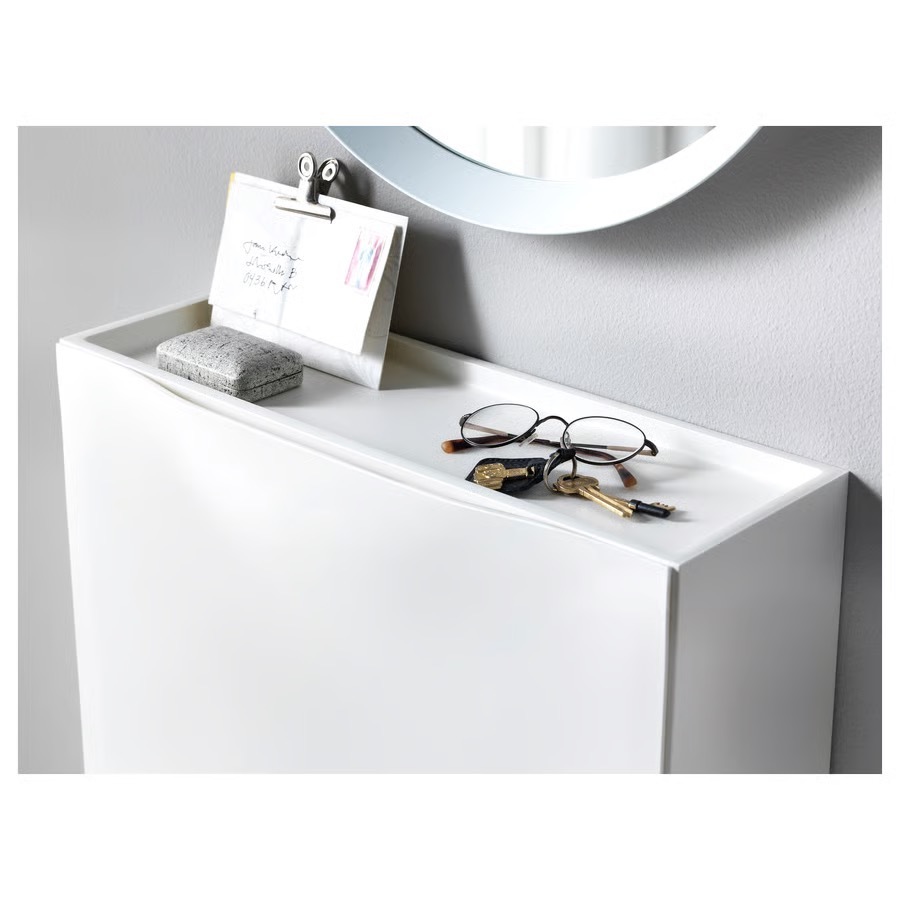 キャビネットを好きなだけ組み合わせられるうえ、上部面には財布や携帯電話、鍵などを置けます。奥行きが浅く場所をとらないソリューションは狭い玄関や廊下で活躍します。