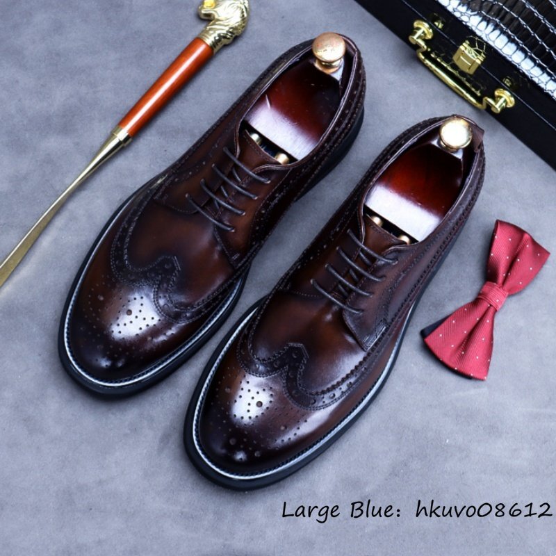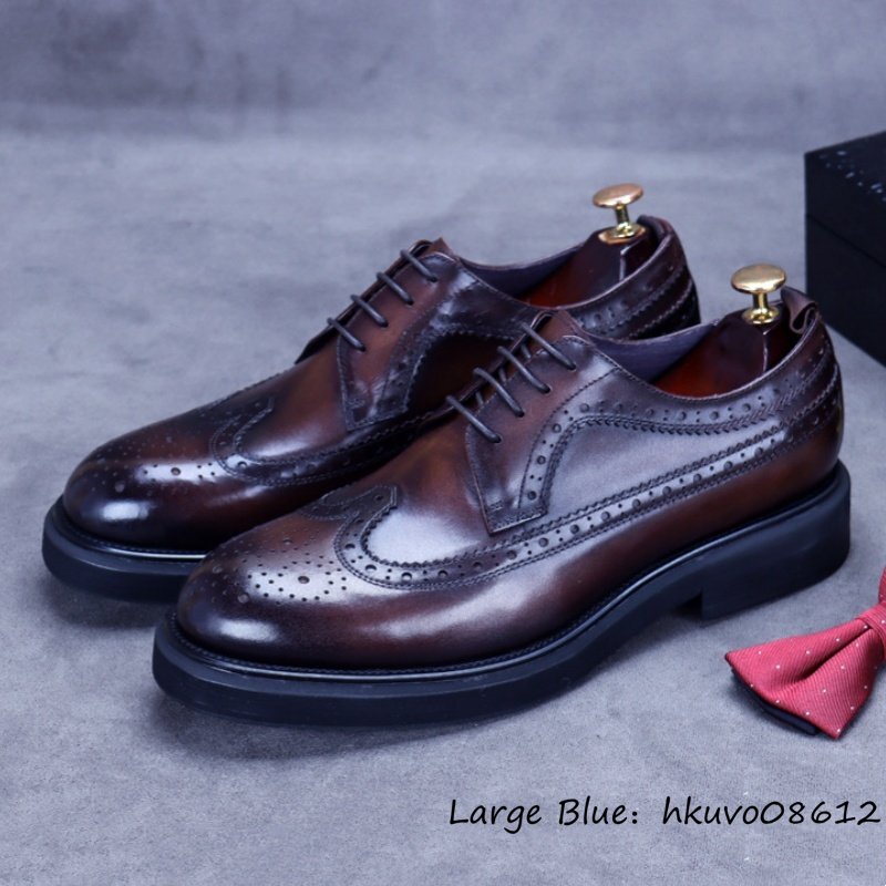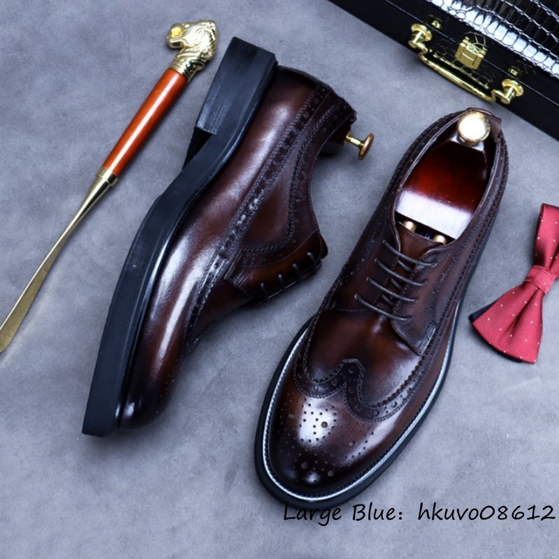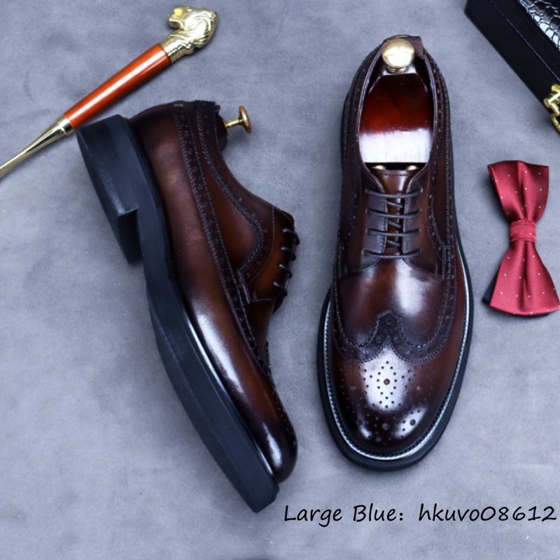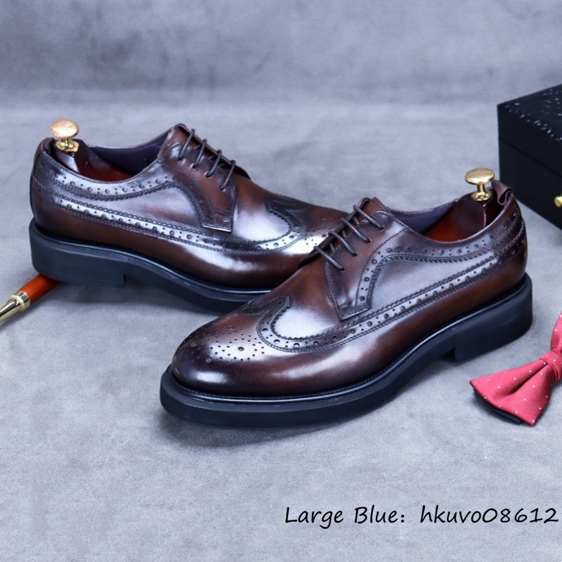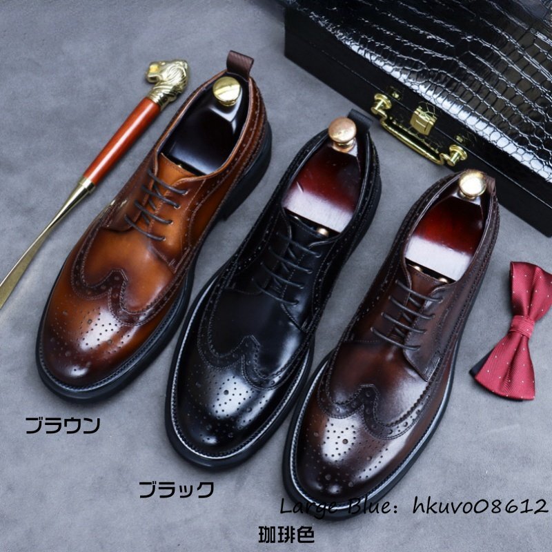 定価11万超■超希少 ビジネスシューズ 本革 レザーシューズ 職人手作り 彫り イギリス風 牛革 革靴 紳士靴 フォーマル 珈琲色 25.0cm