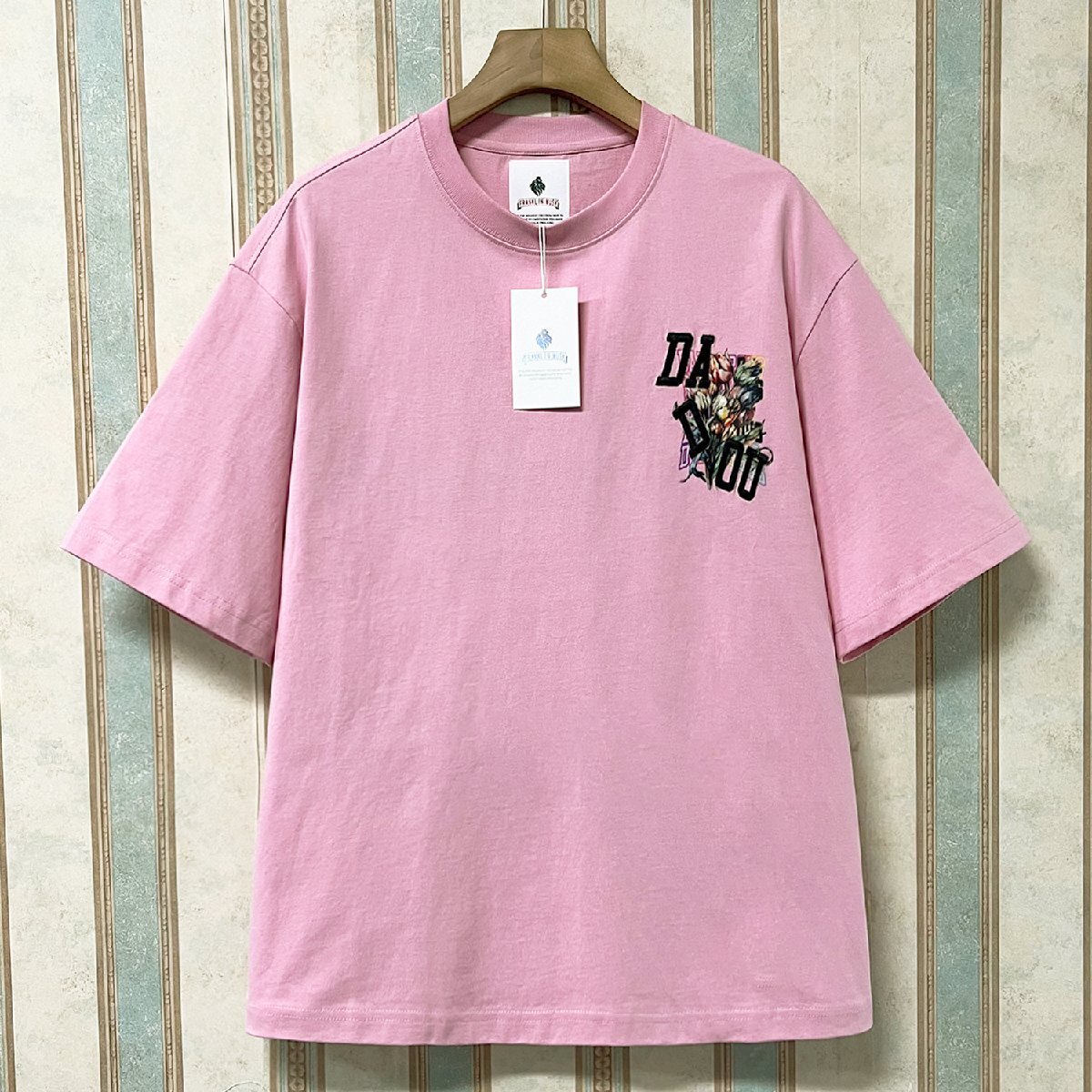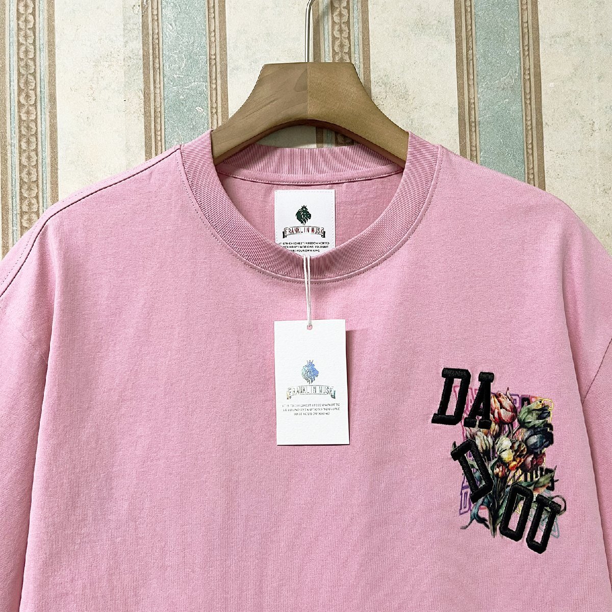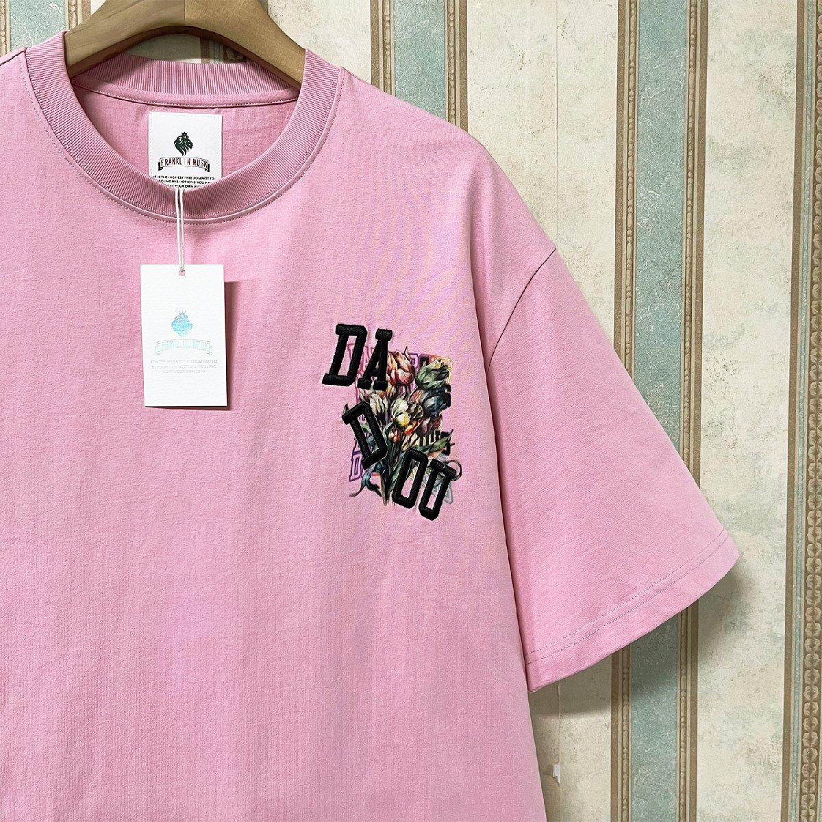 人気・半袖 Tシャツ 定価2万 FRANKLIN MUSK・アメリカ・ニューヨーク発 綿100% バラ柄 刺繍 個性 トップス カットソー 街着 ストリート 夏服 サイズ2