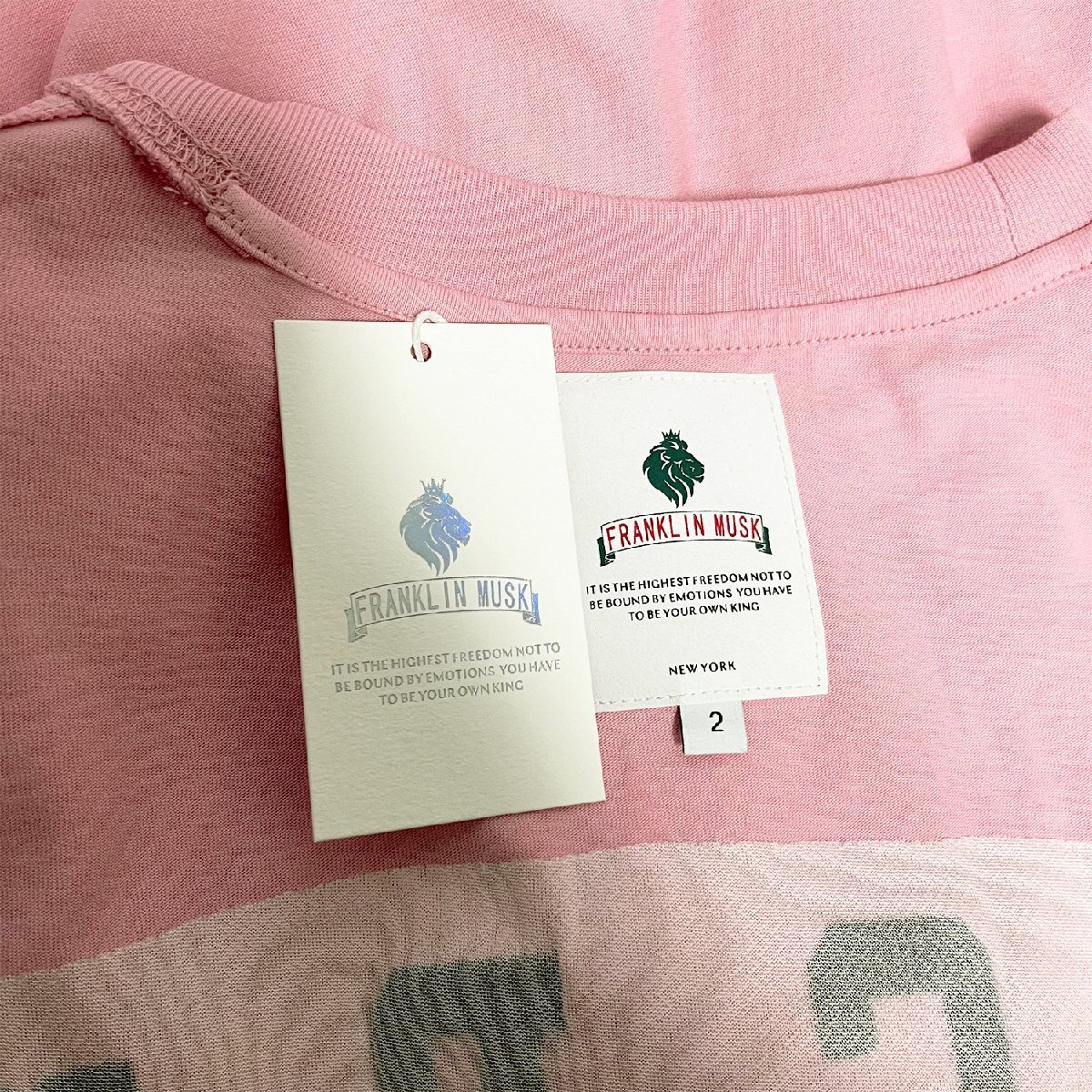 人気・半袖 Tシャツ 定価2万 FRANKLIN MUSK・アメリカ・ニューヨーク発 綿100% バラ柄 刺繍 トップス カットソー 街着 ストリート サイズ2