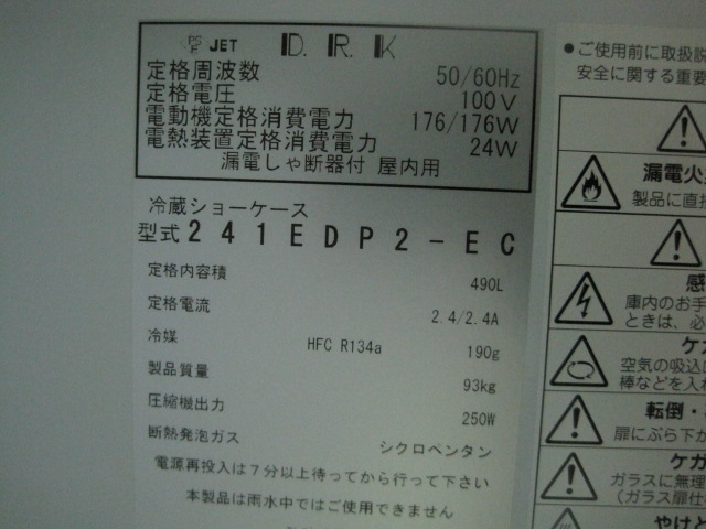 商品名 | 【ダイワ】【業務用】【中古】 リーチイン冷蔵ショーケース 241EDP2-EC◎ 単相100V |