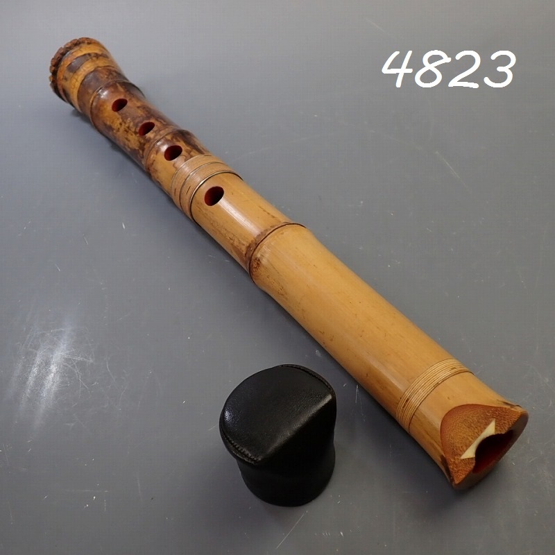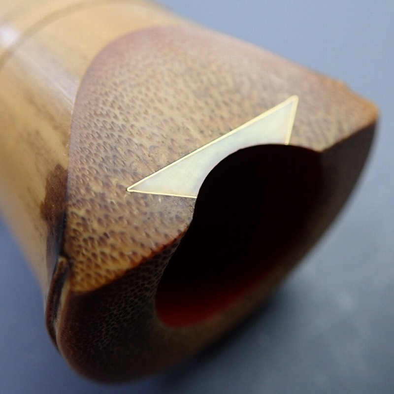 ●FK-4823 栞山 在銘 2印 尺八 金歌口 銀三線 約38cm 20251009