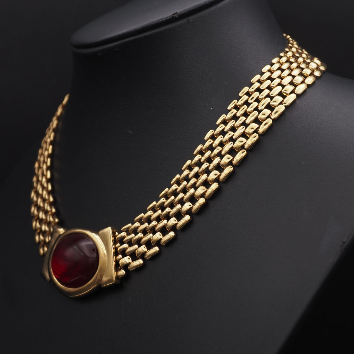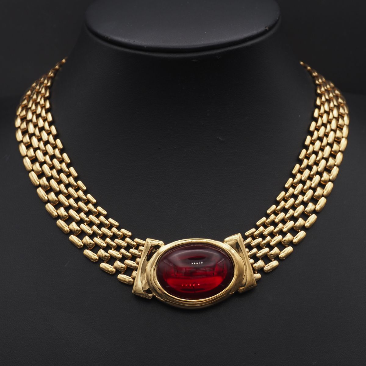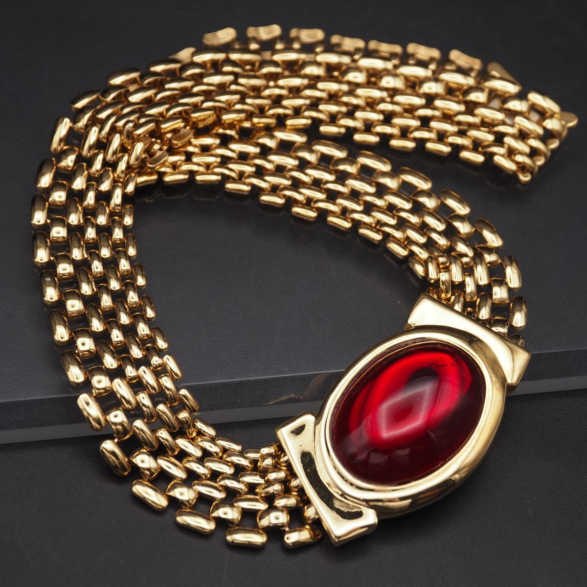 G304 アメリカ ヴィンテージ NAPIER ネイピア ネックレス ガーネット風 ゴールド デザイン コスチュームジュエリー