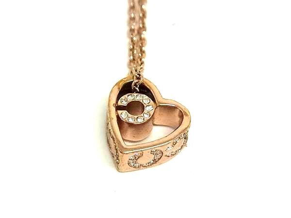 ■美品■ COACH コーチ ラインストーン ハート ネックレス ペンダント アクセサリー レディース ピンクゴールド系 DI9107
