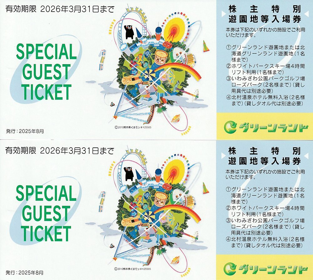 出 品 商 品 | グリーンランド株主優待 遊園地等入場券 2枚 (2枚セットの価格となります) |