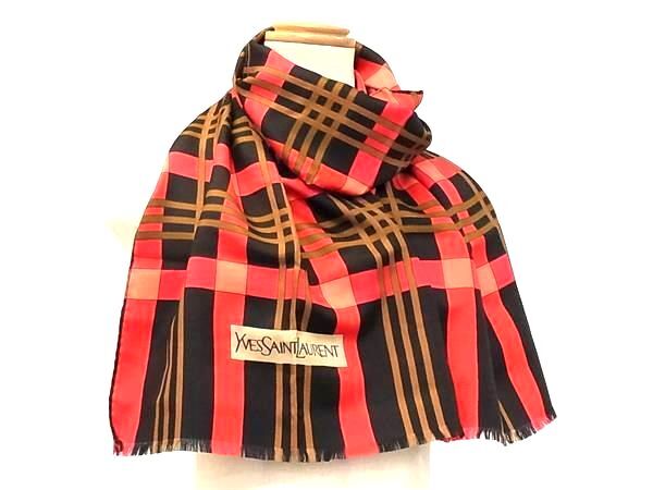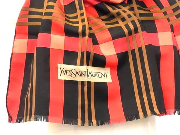 YVESSAINTLAURENT イヴサンローラン シルク100% スカーフ ストール ショール レディース レッド系 DG9485