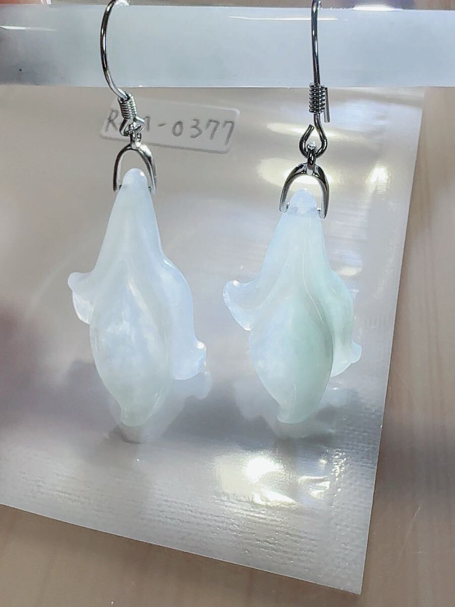 R2M-0377天然本翡翠《本物保証》 チュウリップ ひすい イアリング SV925 一点物 希少 縁起物 お守り パワーストーン
