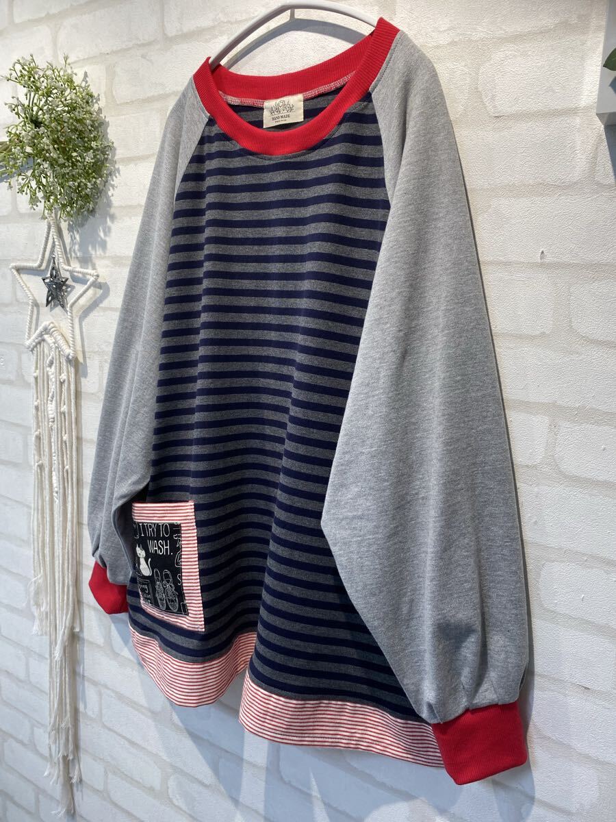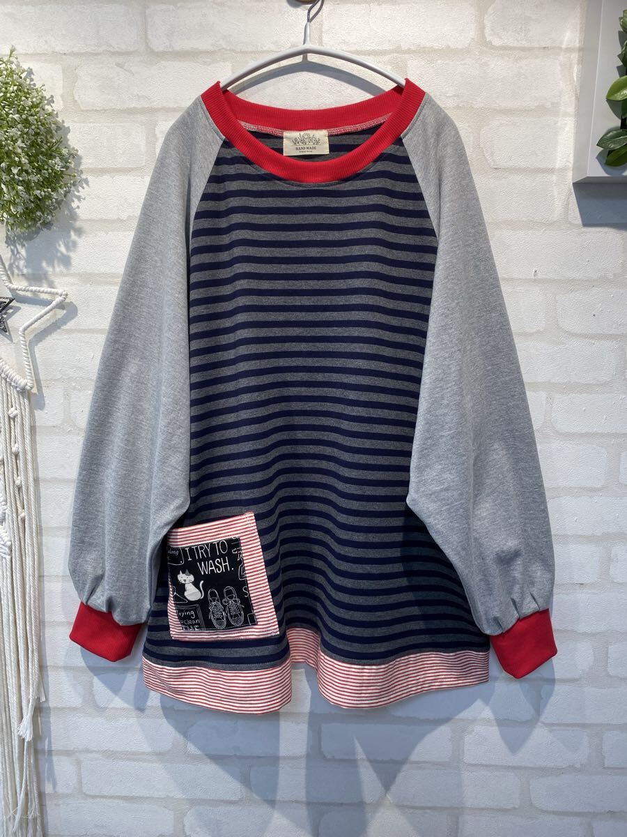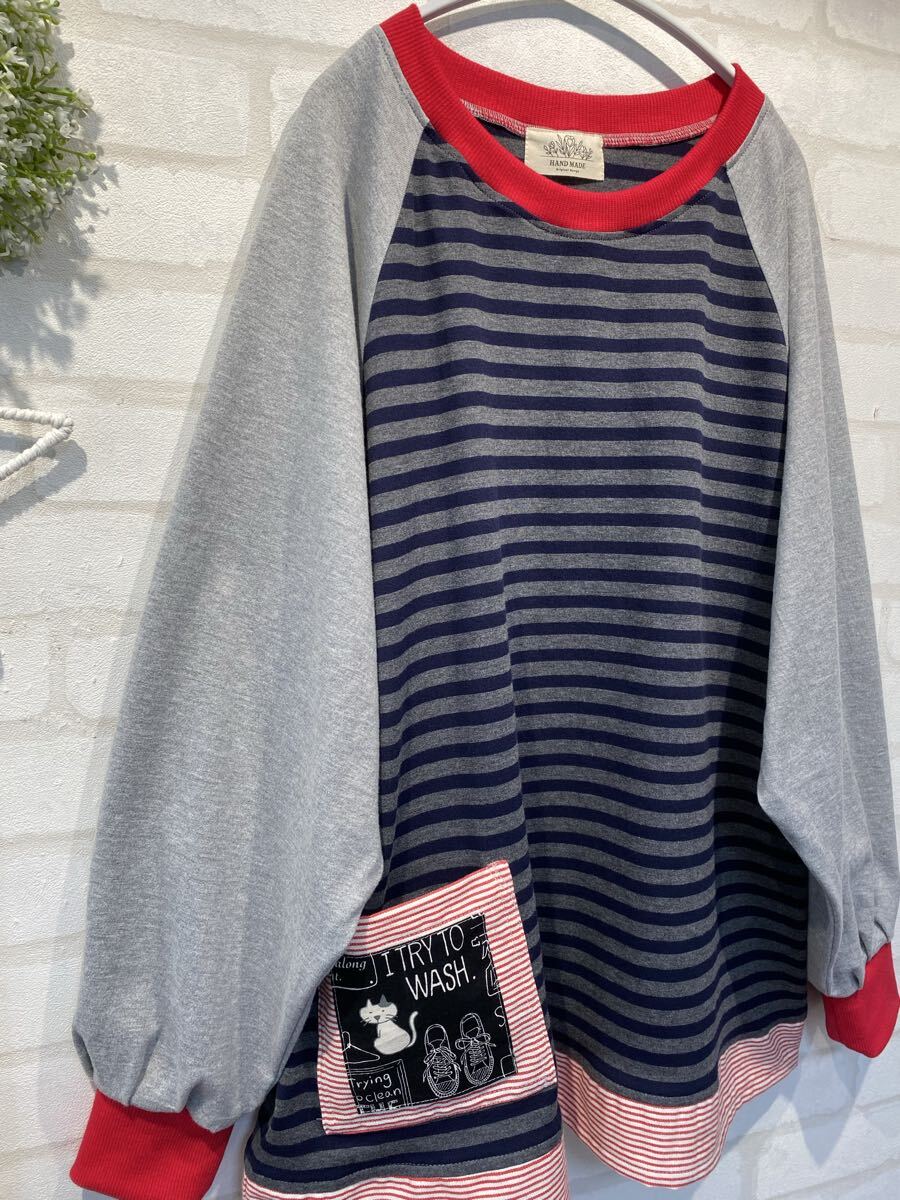 ハンドメイド♪柔らかニット2種&先染めコットン♪着やすくて可愛いゆったりプルオーバー♪