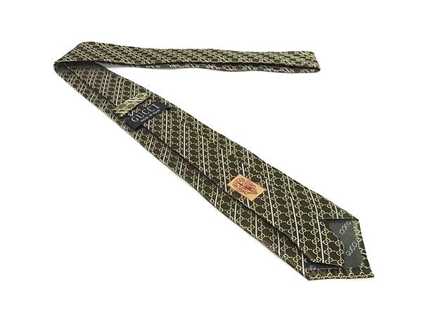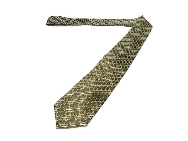 ■美品■ GUCCI グッチ GG柄 シルク100% ネクタイ ビジネス 紳士 メンズ カーキ系 DI6010