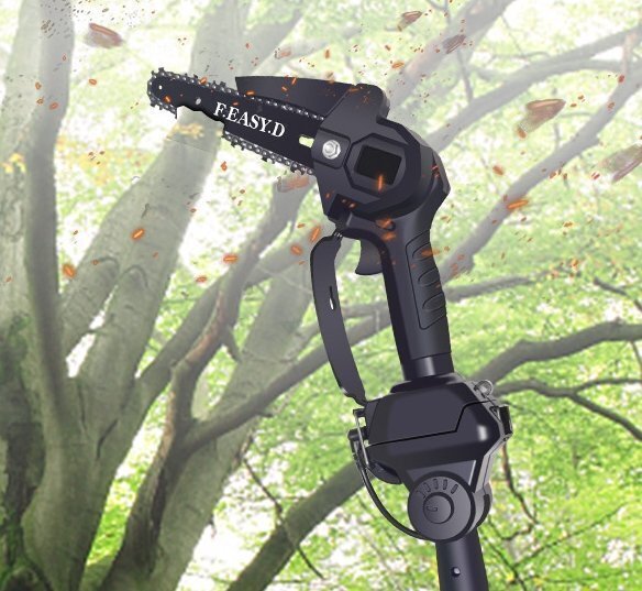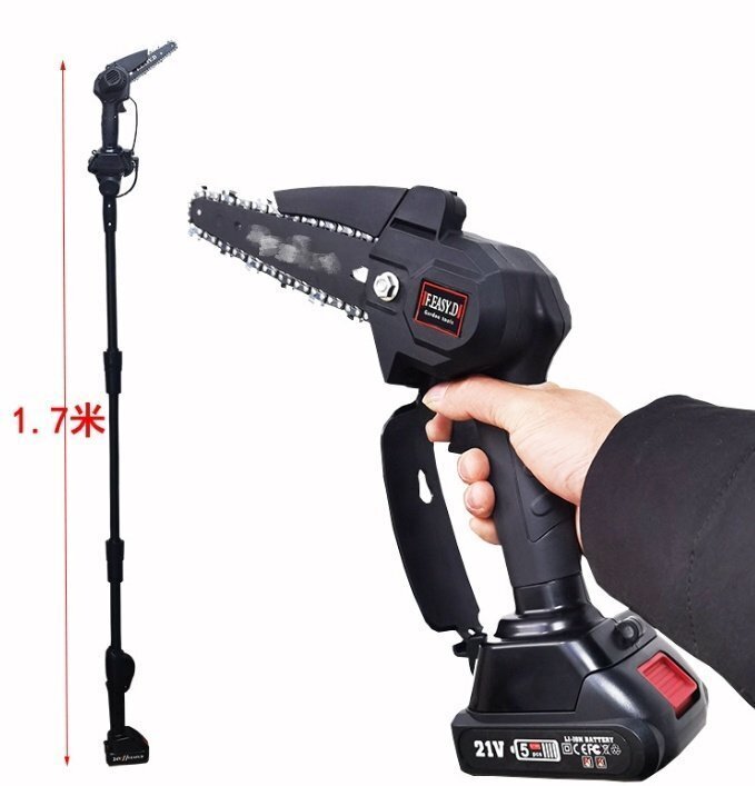 高枝こぎりで木を切る家庭用電気充電式高出力ワンハンドソー工具
