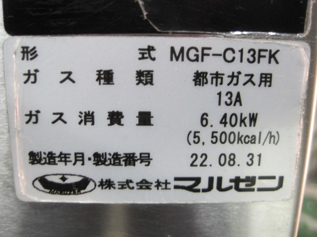商品名 | 【マルゼン】【業務用】【中古】 ガスフライヤー MGF-C13FK 都市ガス |