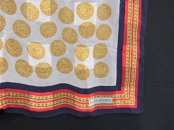 YVESSAINTLAURENT イヴサンローラン 大判 総柄 スカーフ ストール ショール レディース ネイビー系×マルチカラー DJ8314