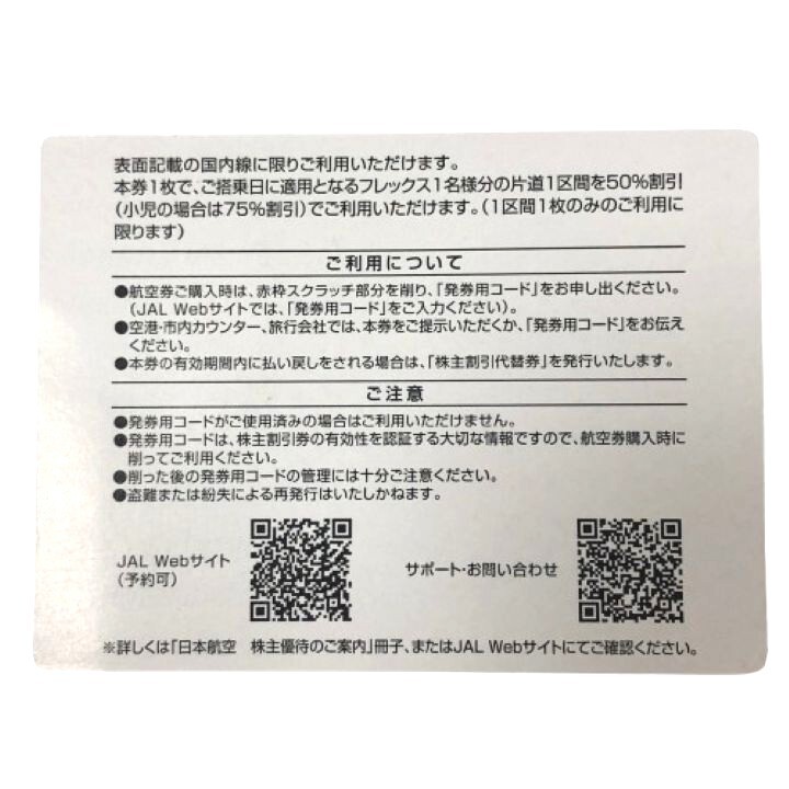 ■【JAL/日本航空】株主優待券/株主割引券 橙色×1枚 有効期間2026年11月30日まで★12149