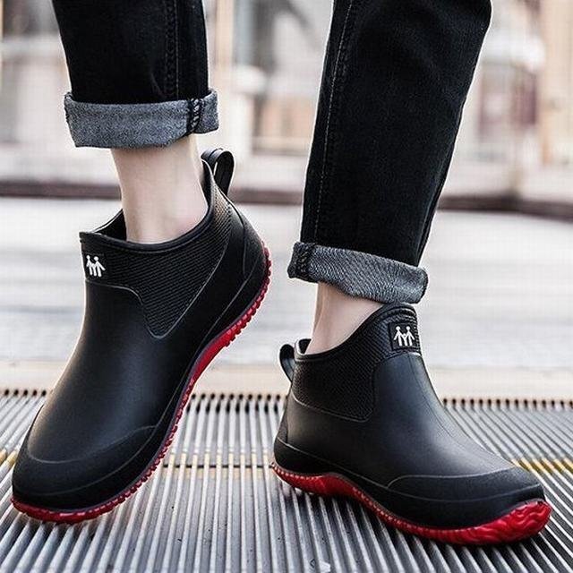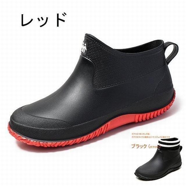 レインシューズ レインブーツ 完全防水 滑り止め 男女兼用 ショートブーツ ボアインナー有り タイプ レッド24.5cm