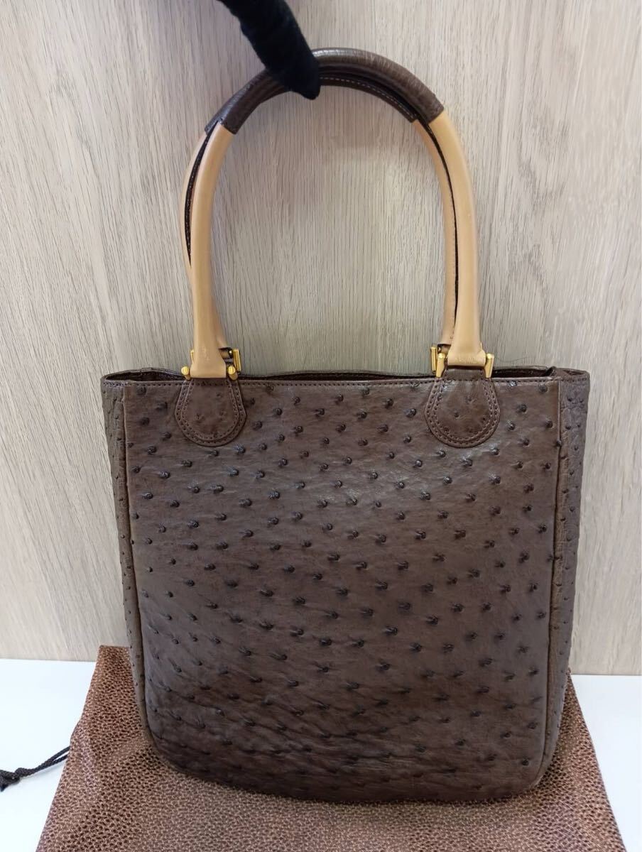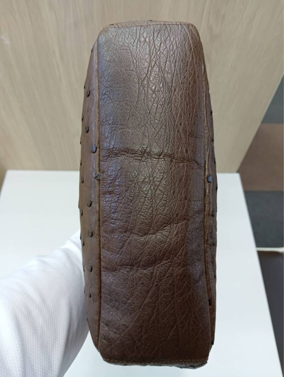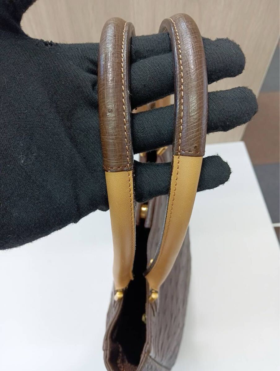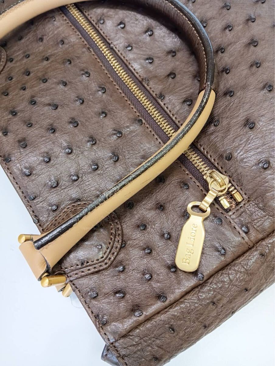 【中古品】バグリオ Bag Liore オーストリッチ レザー トートバッグ ハンドバッグ ブラウン 本革 現状品
