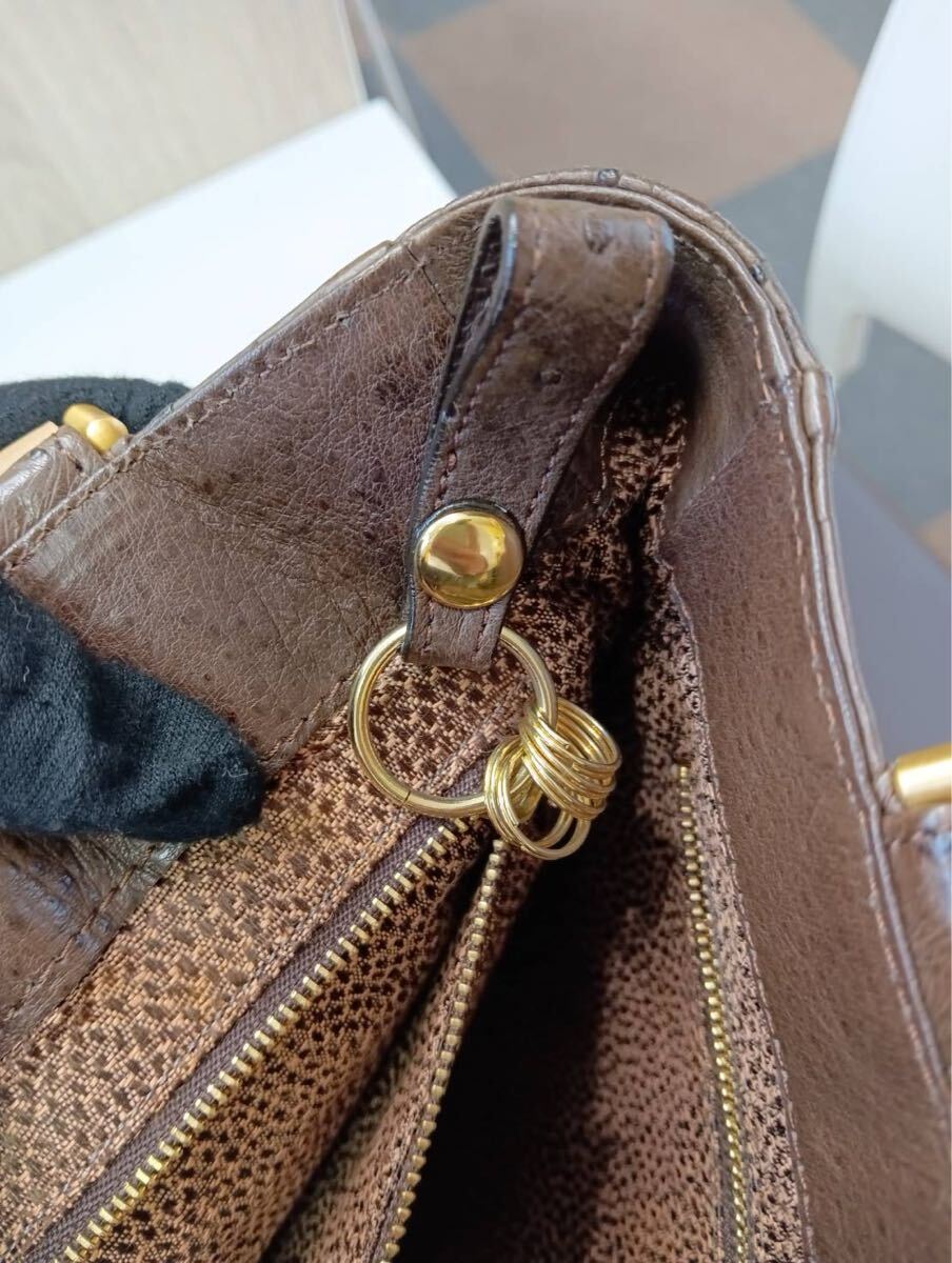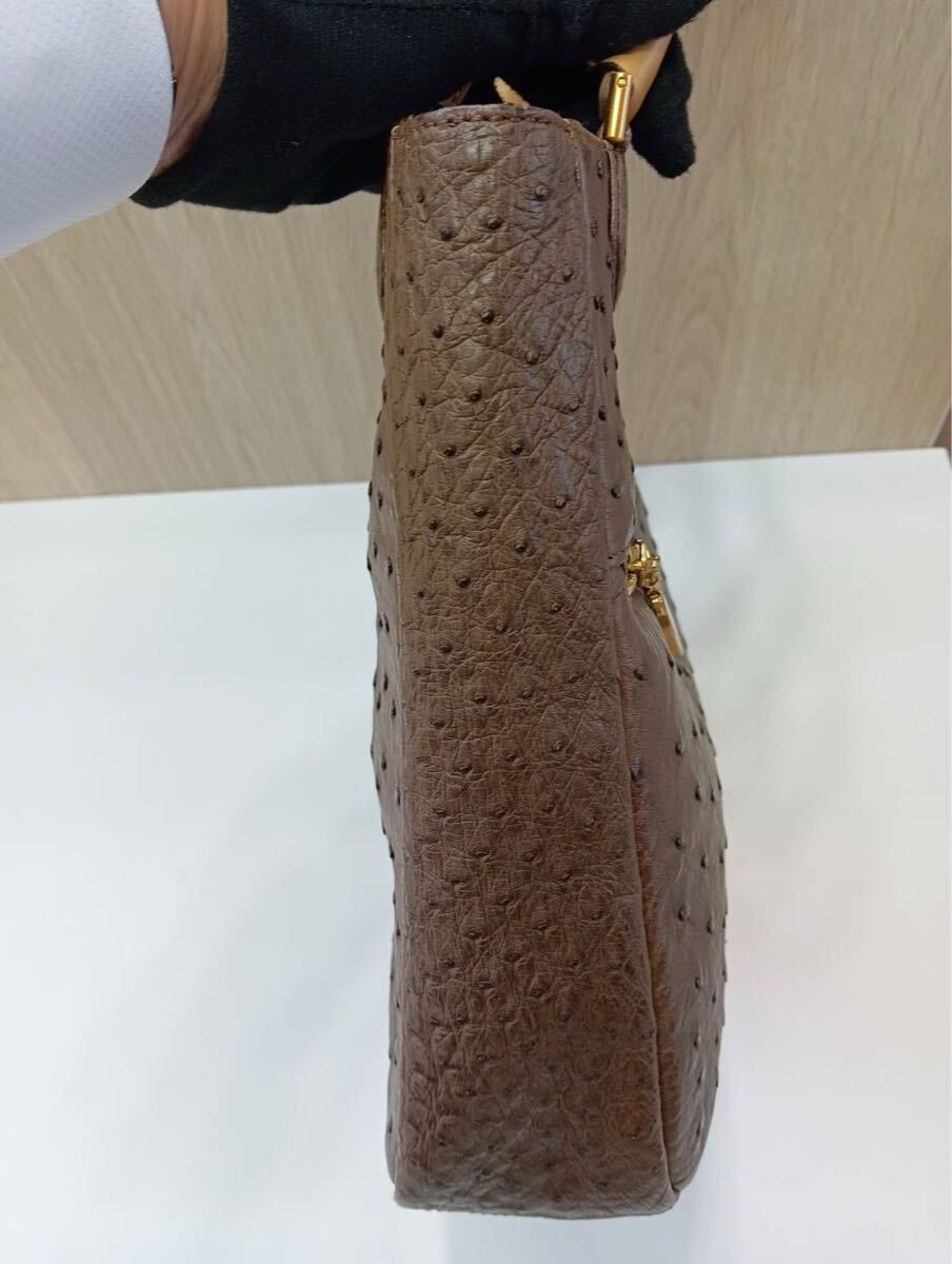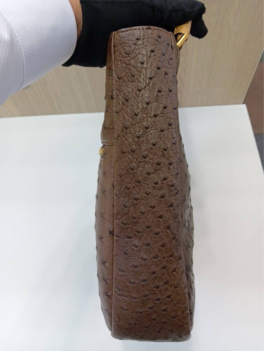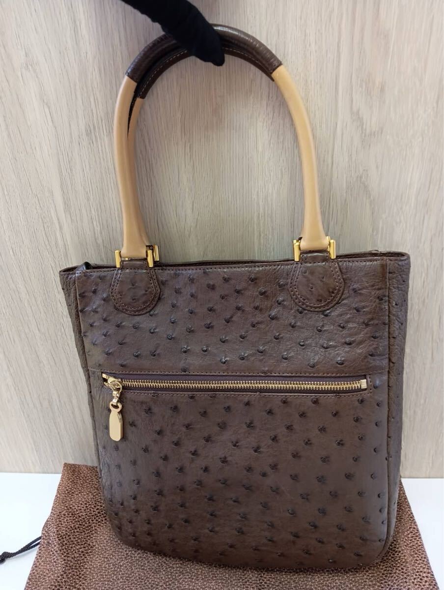 【中古品】バグリオ Bag Liore オーストリッチ レザー トートバッグ ハンドバッグ ブラウン 本革 現状品