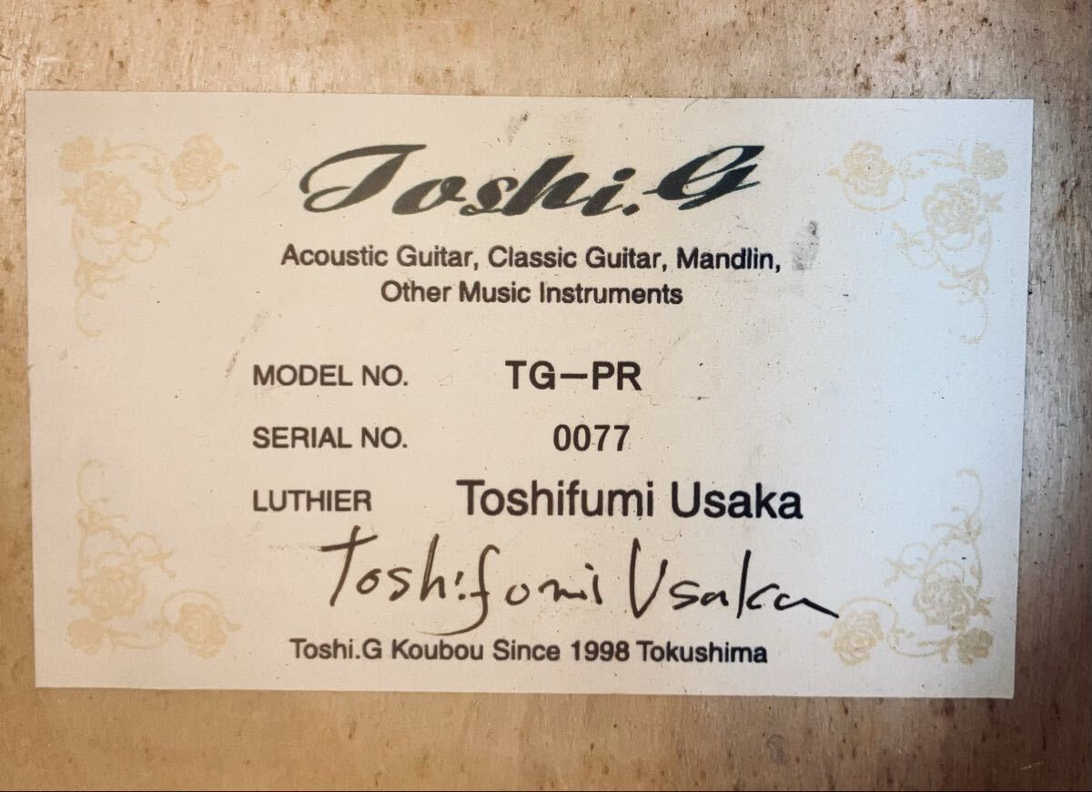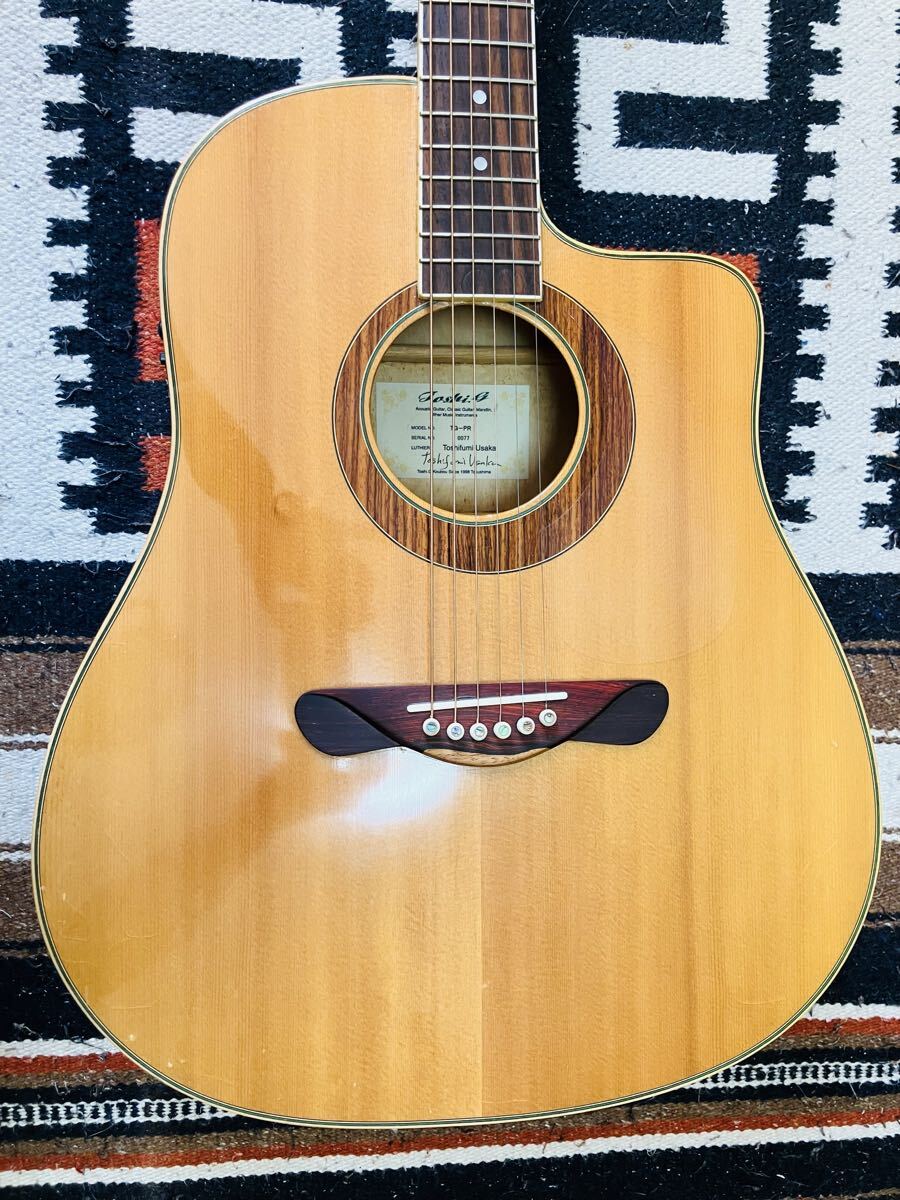 徳島の山奥で仙人の様な暮らしをしている個人ルシアー宇坂利文氏の工房、toshi.G工房製のエレアコです。希少な個人ルシアーの作品。フィッシュマンのプリアンプ搭載。