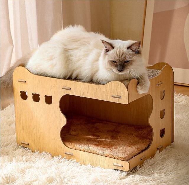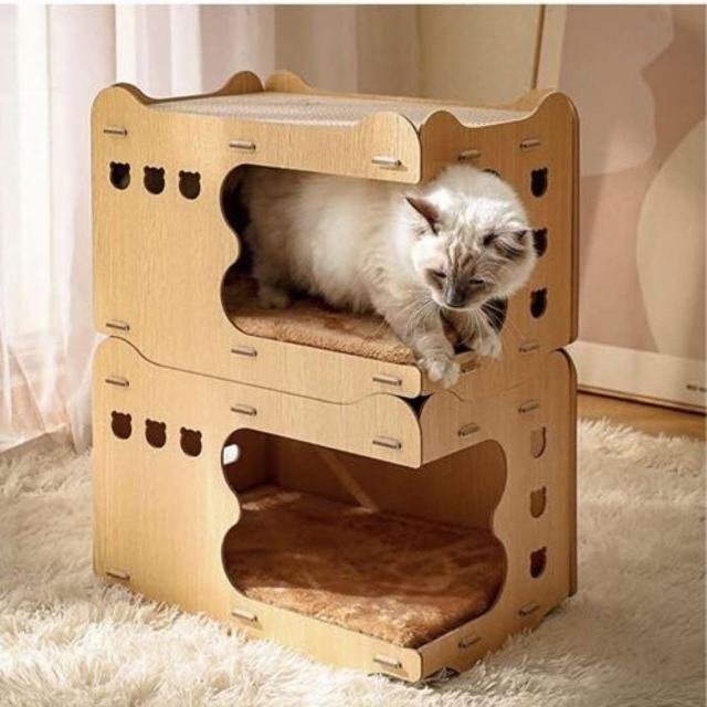 爪とぎクズも出にくく、お掃除も簡単です。壁紙や家具での爪とぎを防止できます。暑いときは上のほうに寝かせ、寒いときは下のほうに寝かせて保温します。猫が2匹いる家庭に適していて、猫は上も下も寝られる。