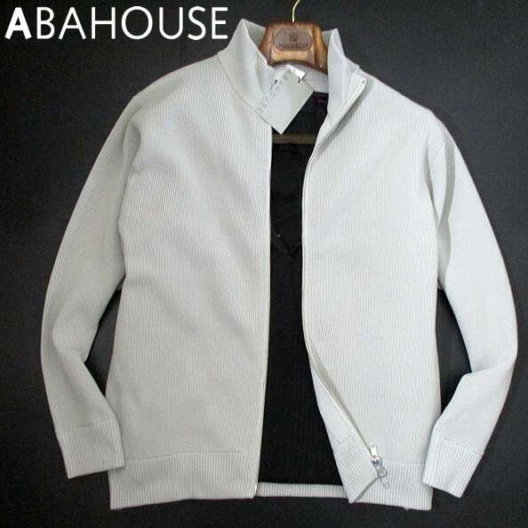 新品 未使用▼ アバハウス 秋冬 ドライビングニット ジップジャケット グレー 畦編み セーター メンズ 48 Lサイズ ABAHOUSE