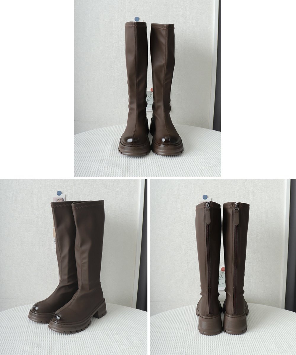 レディースブーツ チャンキーヒール 秋冬 膝下 おしゃれ バックジップ 歩きやすい カジュアル 美脚脚長ブーツ 人気くつ