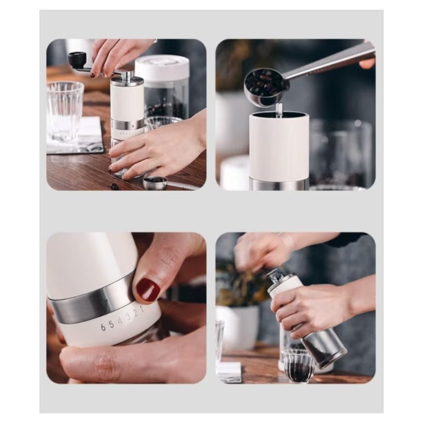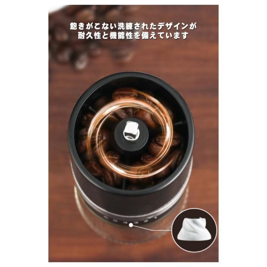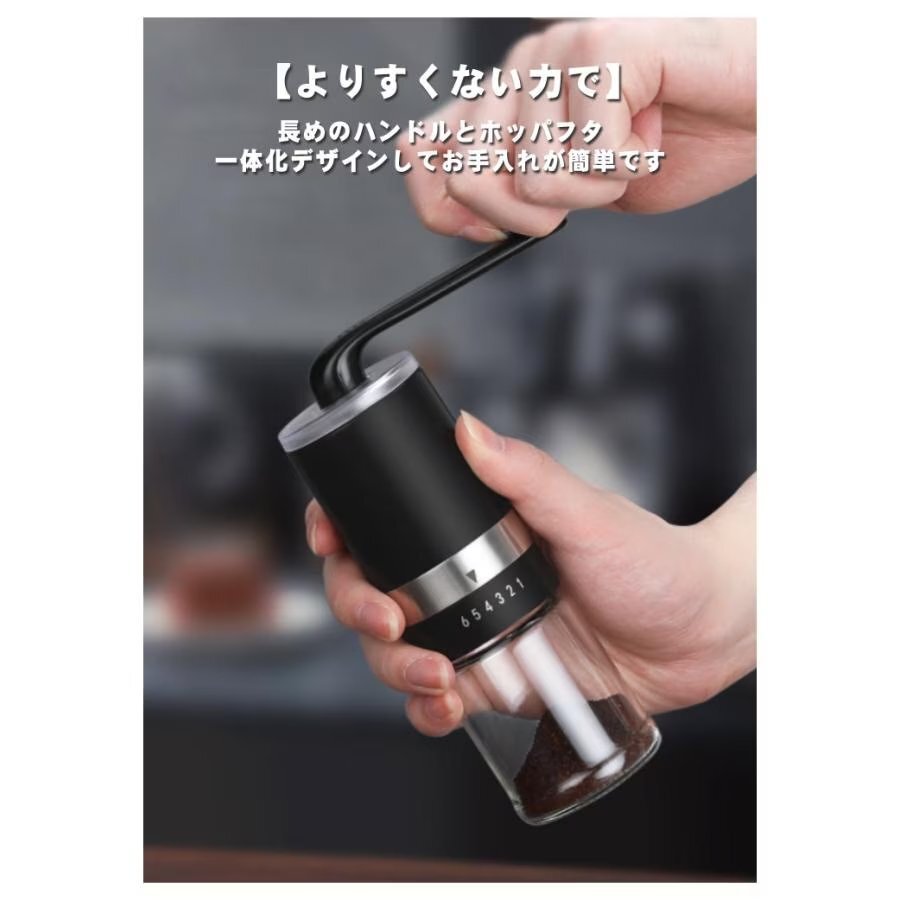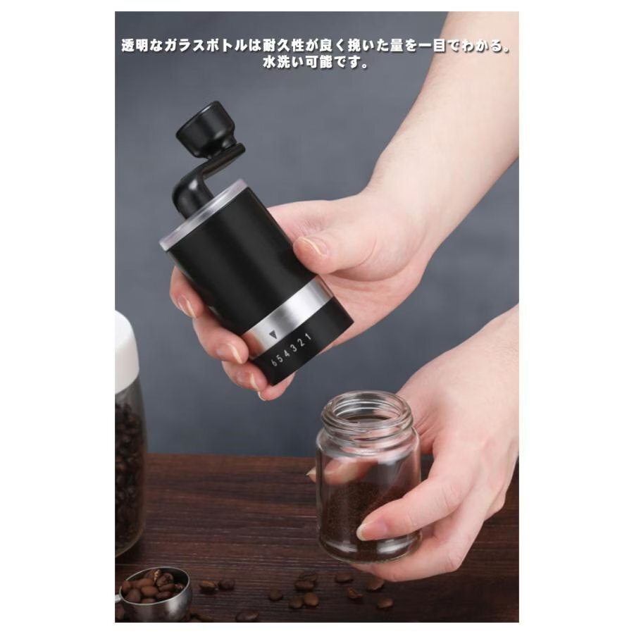 【実用的で耐久性】飽きがこない洗練されたデザインが耐久性と機能性を備えています。透明なガラスボトルは耐久性が良く挽いた量を一目でわかる。水洗い可能です。