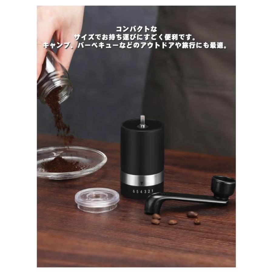 コーヒーミル 手挽き コーヒー豆挽き 珈琲 コーヒーグラインダー コーヒーまめひき機 アウトドア キャンプ 水洗い可 ブラック hw092bk