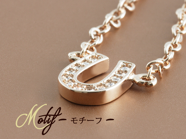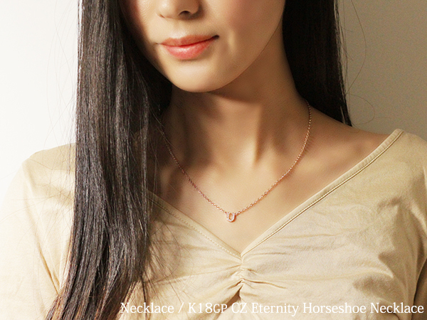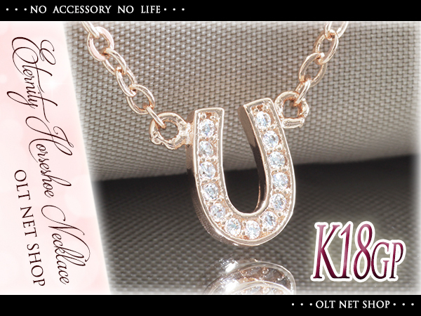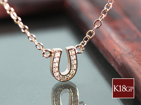 新品/ネックレス/K18GP/馬蹄/ピンクゴールド/ダイヤ/18金/女性/レディース/ホースシュー/幸せ/幸運/お守り/シンプル/上品/CZ/PG