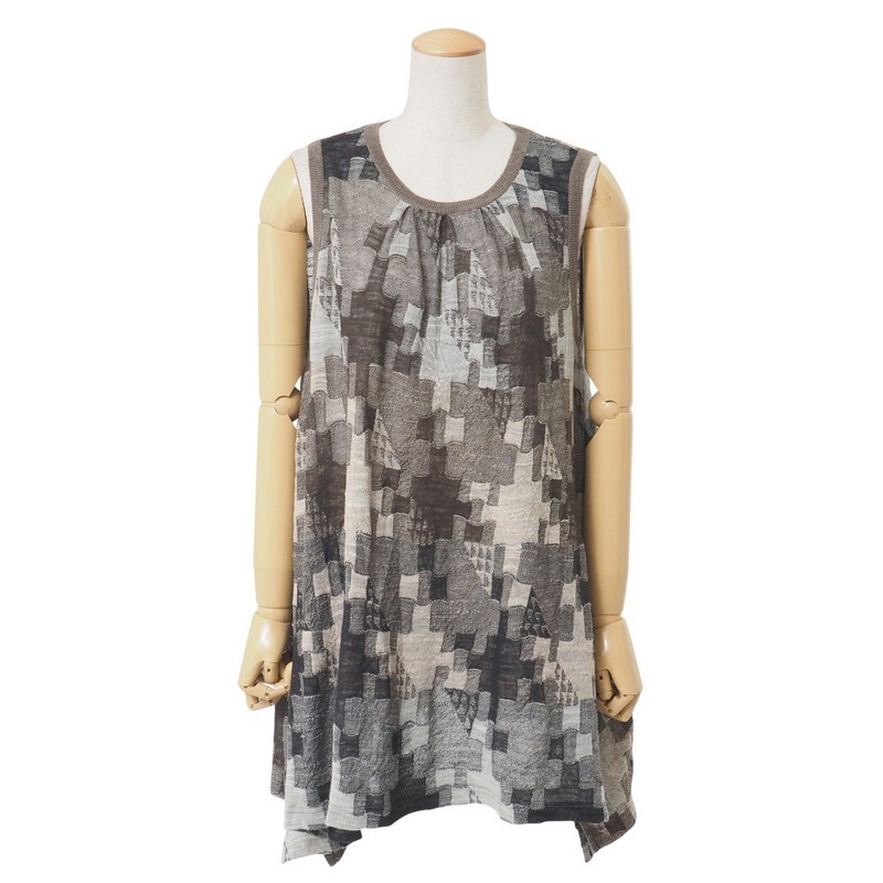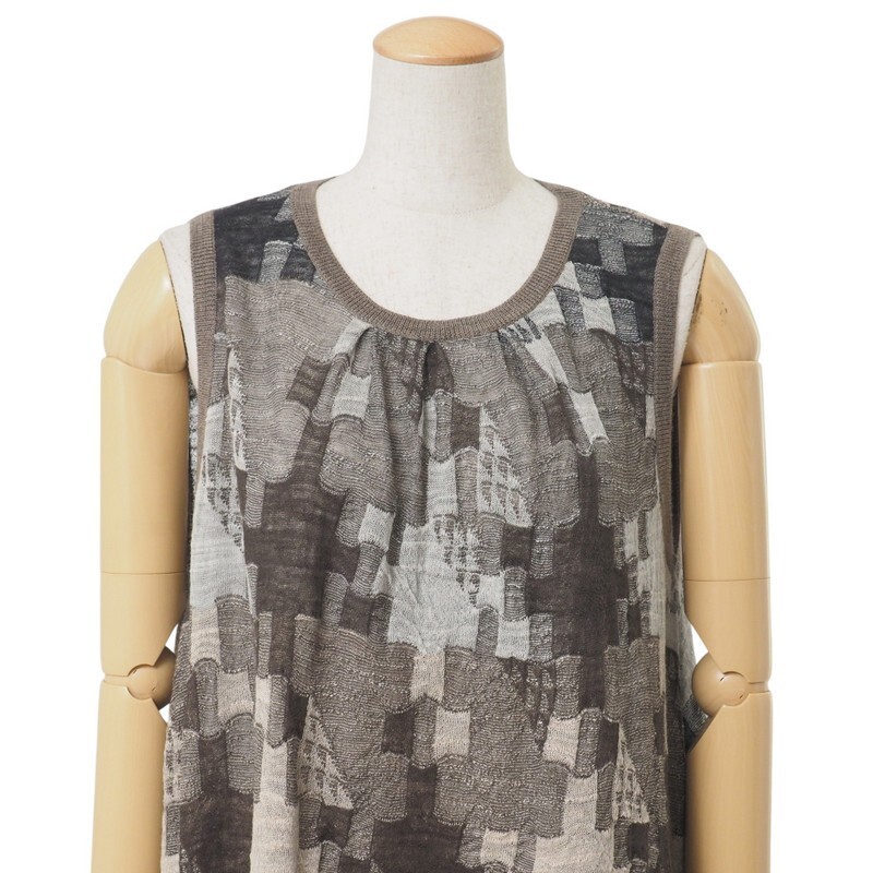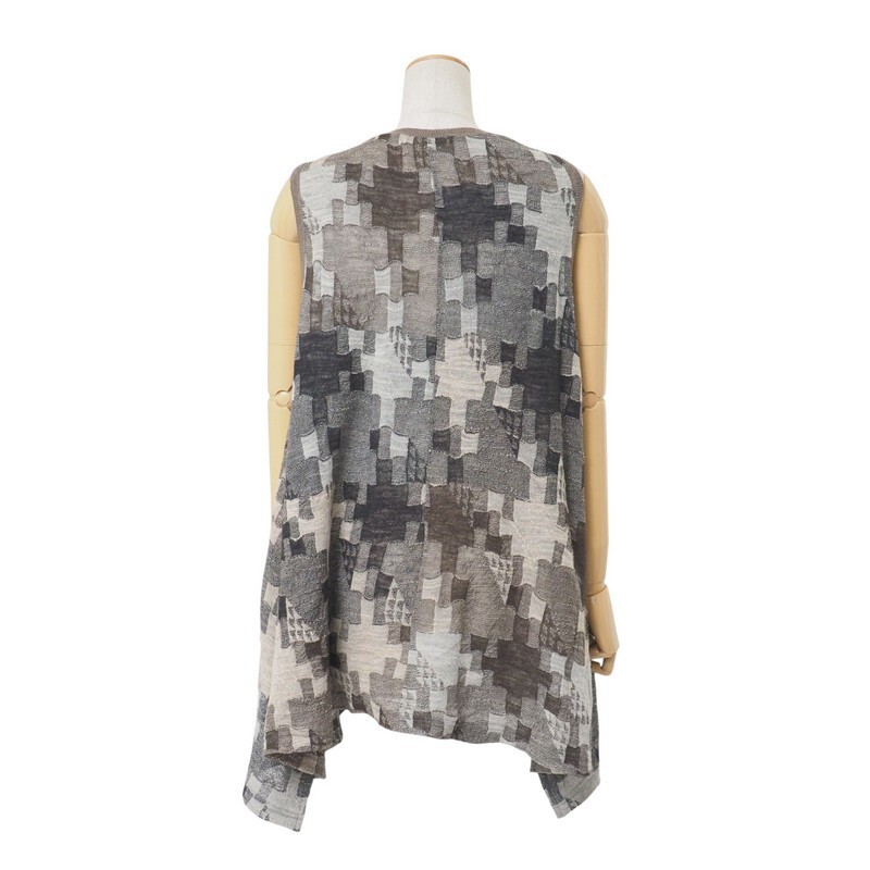 TI9483●日本製*フーガフーガ/FUGA FUGA 佐藤繊維*ウールアクリル ニットベスト*総柄*幾何学*グレー系×ブラウン系 | |||