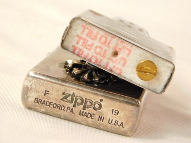 ◆必ず最後までお読みください◆ クリックポスト 送料 全国一律185円又は レターパックプラス送料600円をご負担ください。 ※お引き取り歓迎です。お引き取りに来られる場合は、梱包をしませんので、お取メッセージに、ご落札翌日のAM9時までにご連絡くださいm(__)m(引取りは金・土・日以外の朝9時~17時00分まで可能その他ご相談) ※ご落札後、同梱をご希望の商品がありましたら翌日朝9時までに「同梱依頼をする」をチェックしてご連絡ください。こちらから折り返し送料のご連絡をさせていただきます。 ※配送の日時を指定される場合,その他ご要望がありましたら ご落札翌日朝9時までに、お取引メッセージにお知らせ願います。発送の都合でそれ以降にご連絡いただいた内容のご要望はお受けできない場合がありますので予めご了承願います。ご指定日時やご要望は簡潔にご記入ください(宅急便指定可能時間→午前中・14~16時・16~18時・18~20時・19~21時) 十字架の真ん中に ターコイズ?のような感じの水色の石がついています ★リッド(上蓋) スレキズ【あり】 ・ボトムケース スレキズ【あり】 ・ボトムコード F 19 ・インサイドユニット MADE IN USA ZIPPO MFG. CO. BRADFORD・PA E 18 ・ホイール(石)(指で回せますが 硬いです) ・着火【しませんでした。】 ・火花が【ちりませんでした。】 ・クリック音はします(私的には普通の音だと思います) ・書いてあること SILVER Cross /BRADFORD・PA MADE IN USA (横にNo.268と刻印あり)SILVER Cross REGENERATION OF AESTHETISC FROM CELTICERA