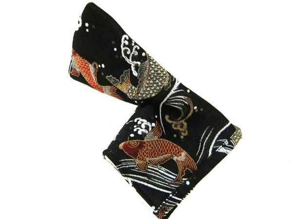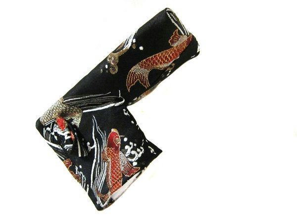 【パターピンタイプ】ゴルフ クラブ用 西陣織 ヘッドカバー パターカバー ピンタイプ ハンドメイド 金襴 和風 黒系 鯉柄 2642 | |