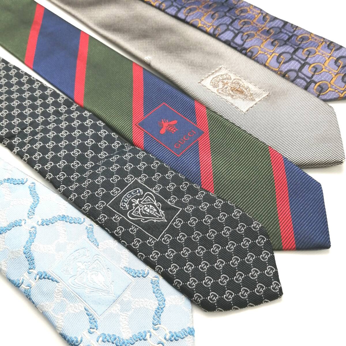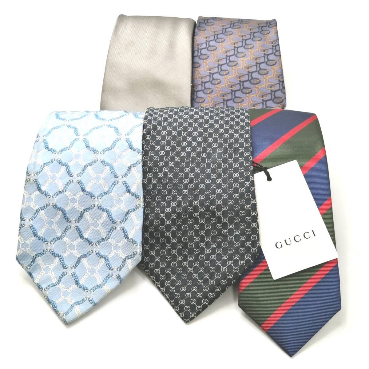 1円スタート 良品~ GUCCI グッチ ネクタイ 5本セット 未使用タグ付・GG・ストライプ他