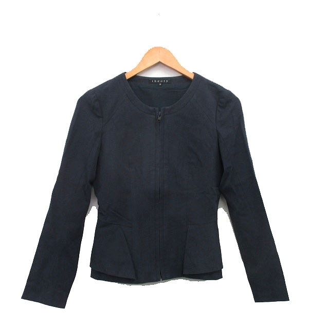 セオリー Theory ノーカラージャケット コットン シンプル 0 ネイビー 紺 /KT34 レディース