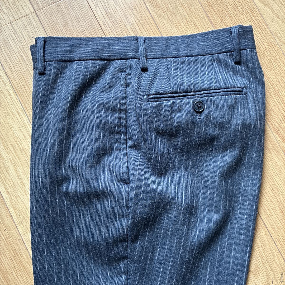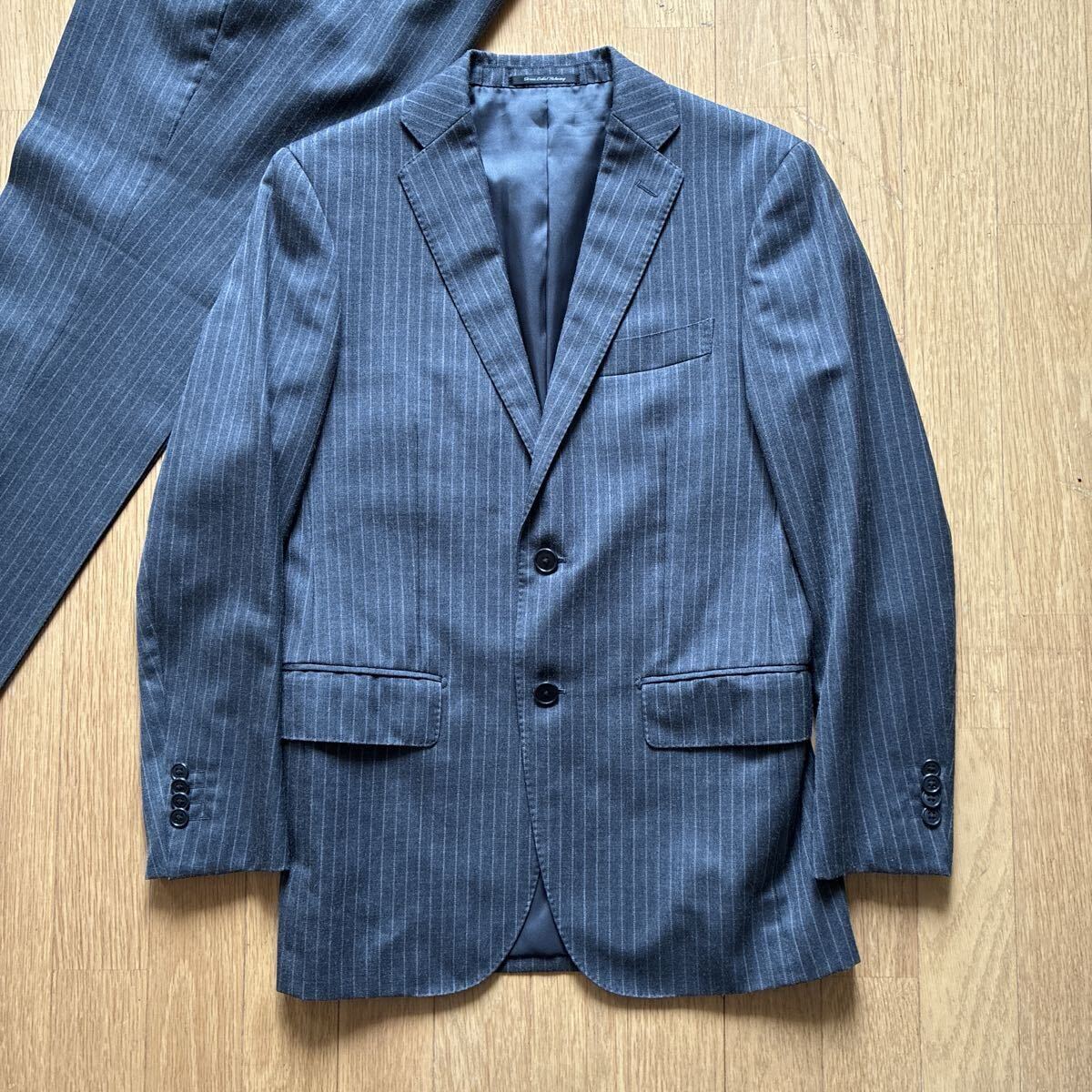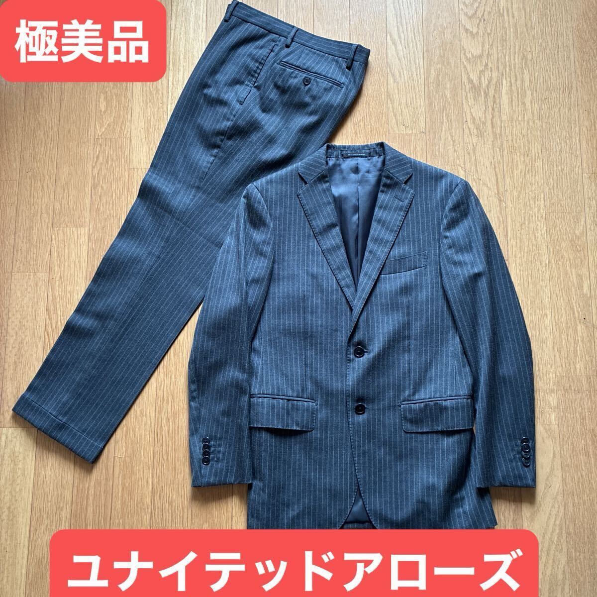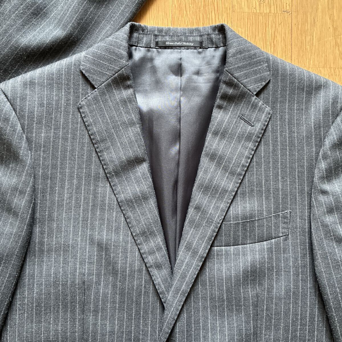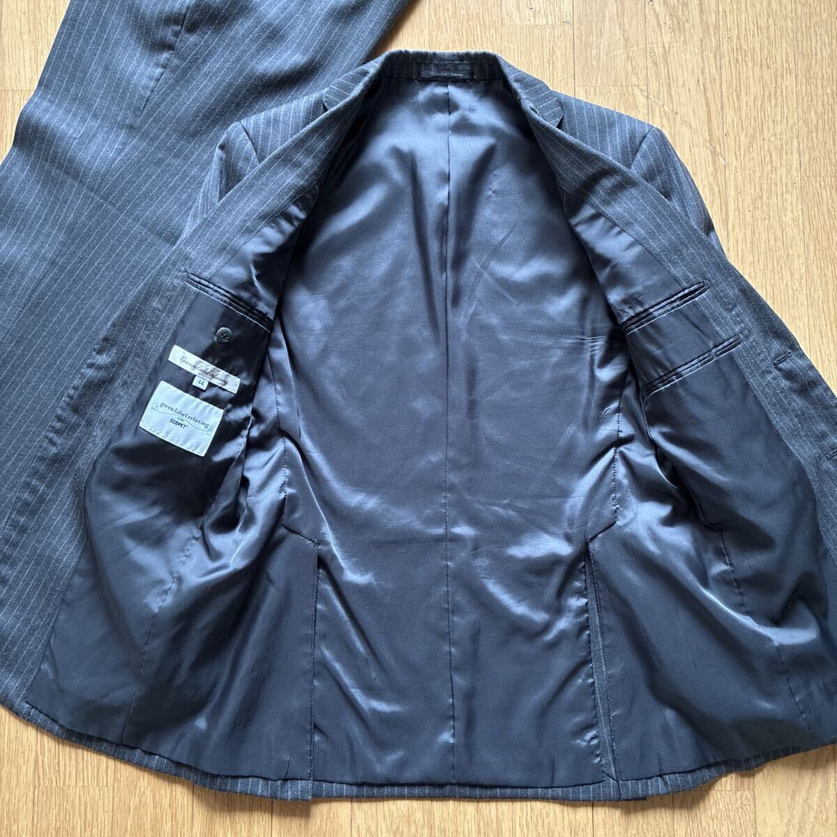 | 極美品 ユナイテッドアローズ グリーンレーベルリラクシング 秋冬用 チャコールグレー ストライプ セットアップ スーツ | |||