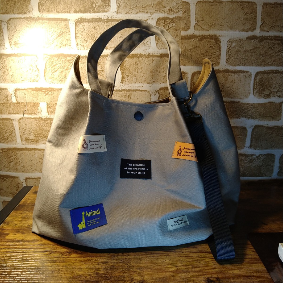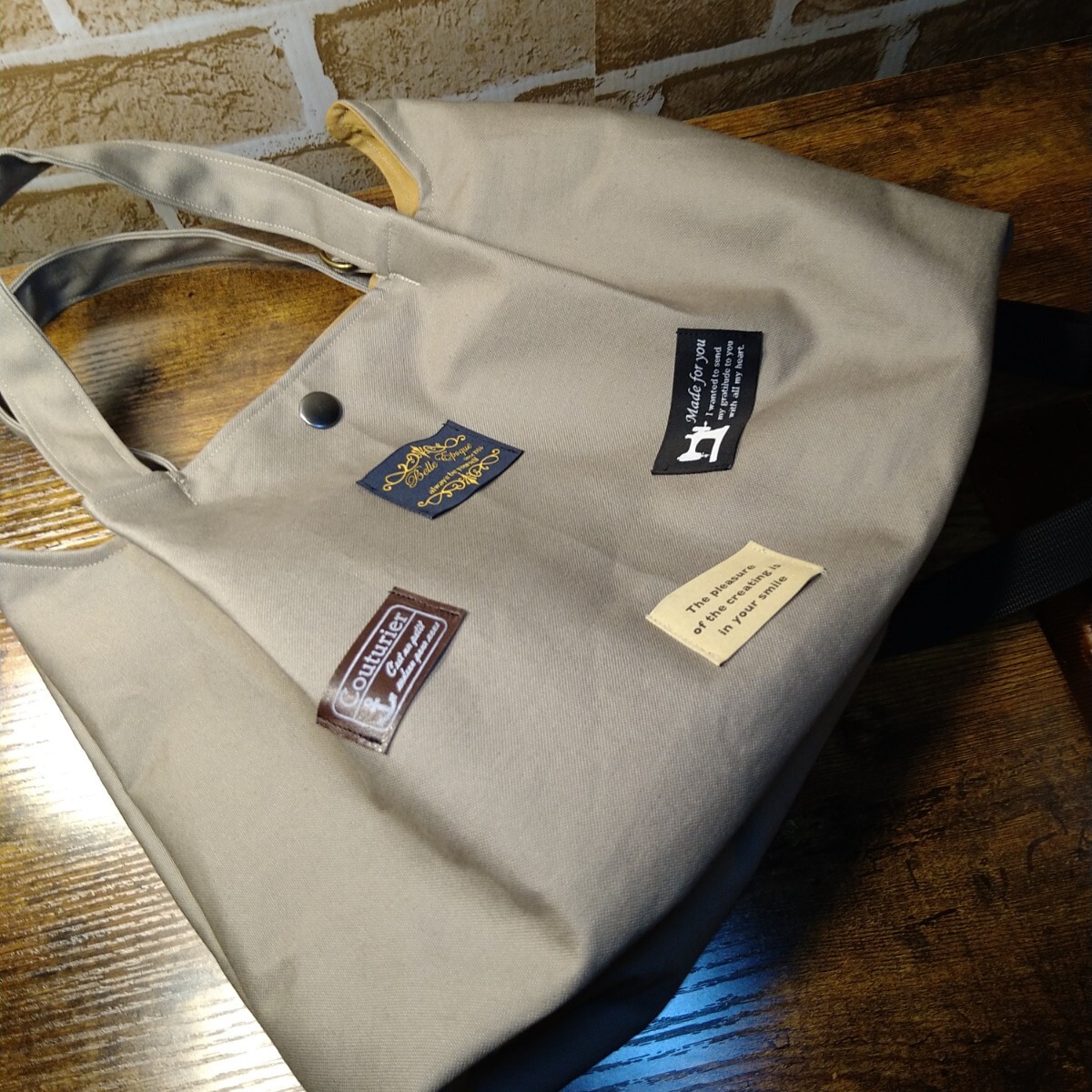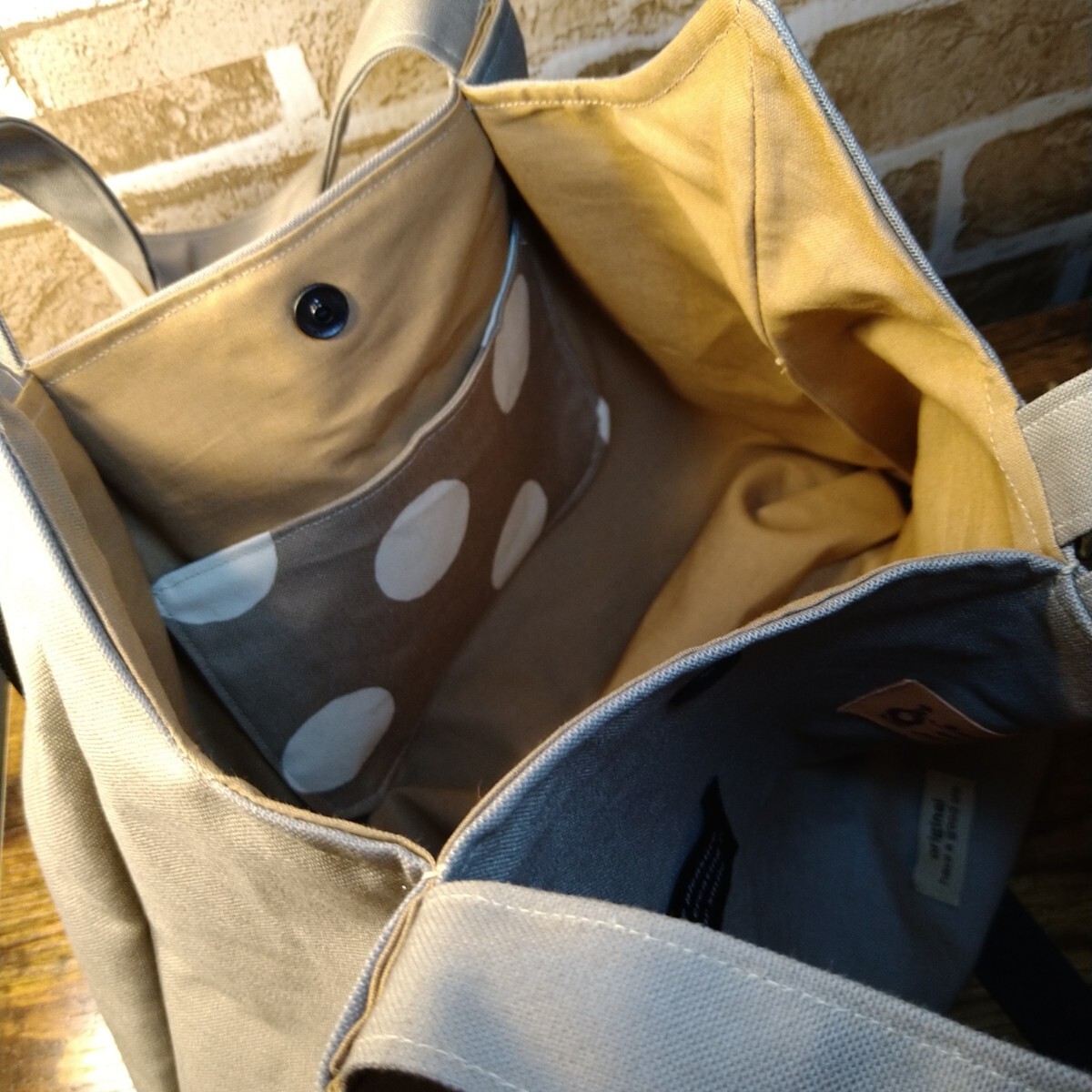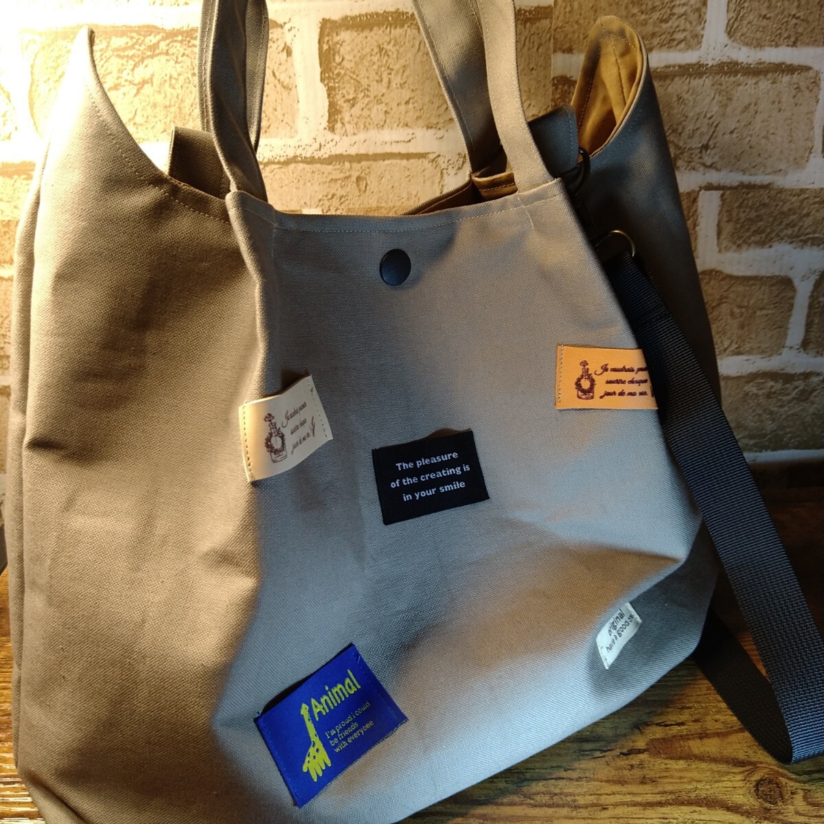 ふっくらマチとネコ耳が可愛いタグがポイントの大きめトートバッグです。ふっくらさせる為、入り口は少し狭くなります。