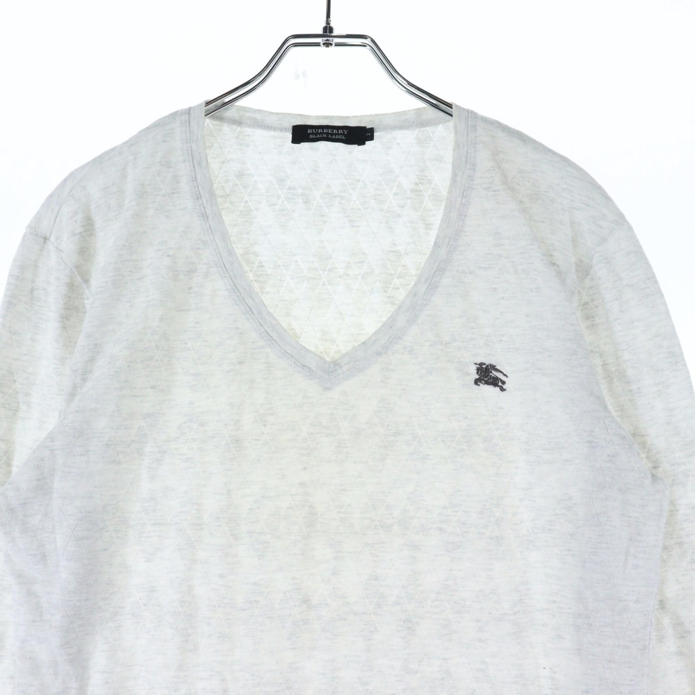 BURBERRY BLUE LABEL バーバリーブルーレーベル ワンポイントロゴ刺繍 Vネック ロングスリーブ 長袖Tシャツ カットソー グレー