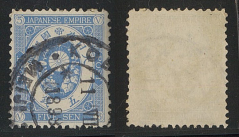 日本切手 使用済 U小判 5銭 後期13 二重丸型日付印 明治KO(BE) ゴム印 青