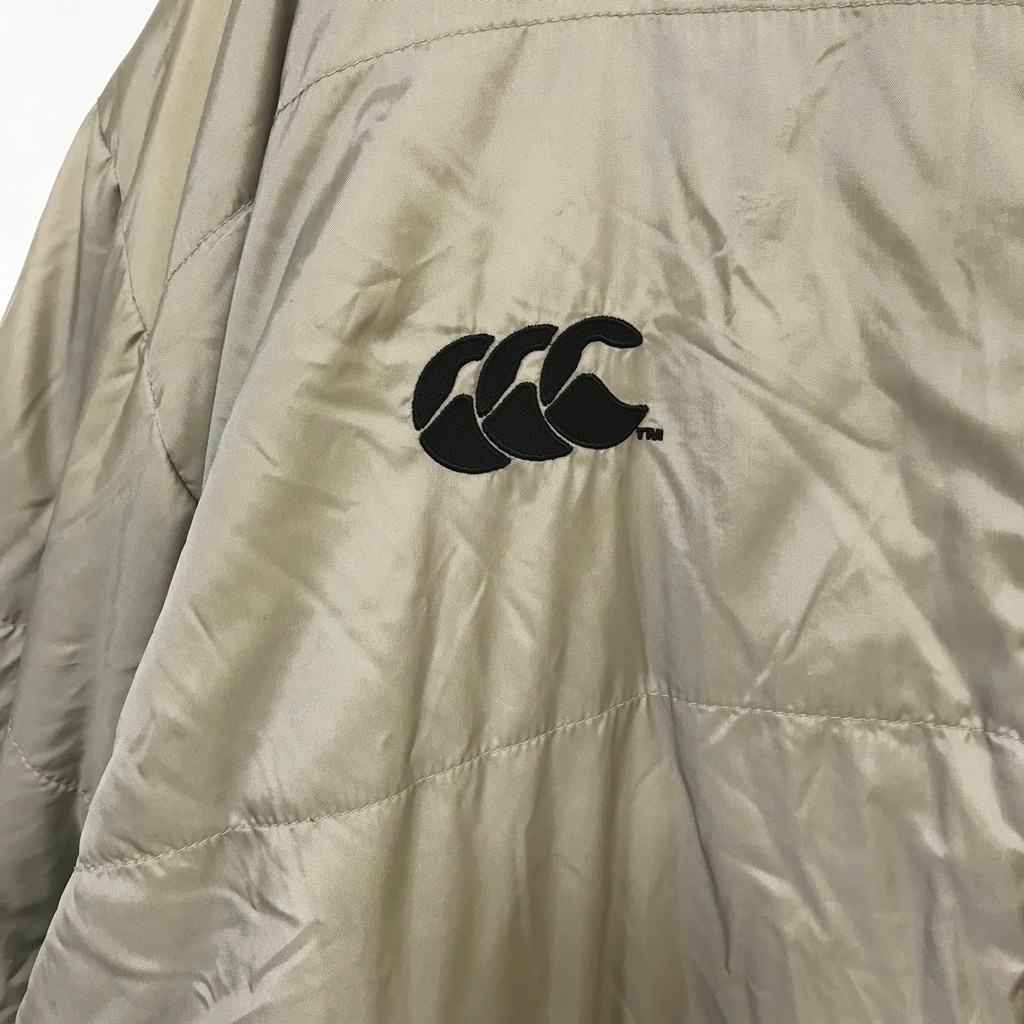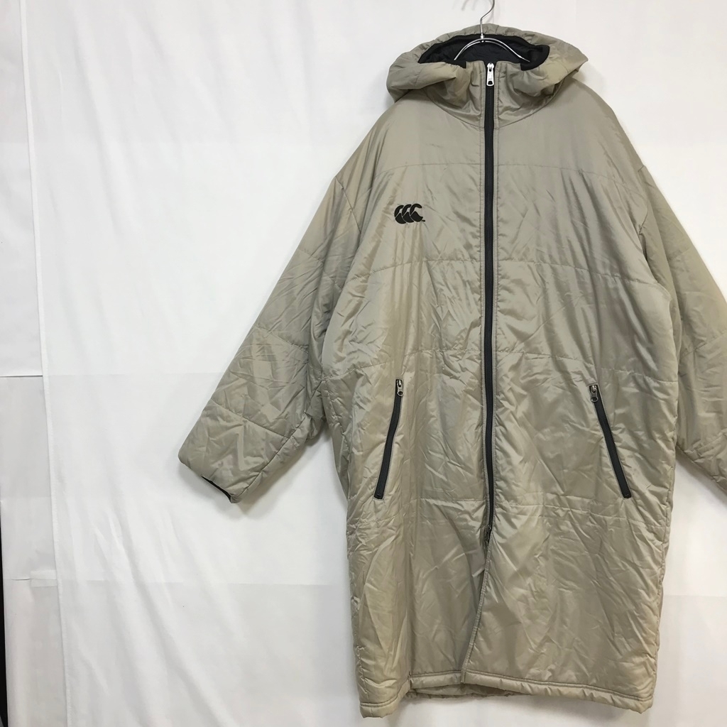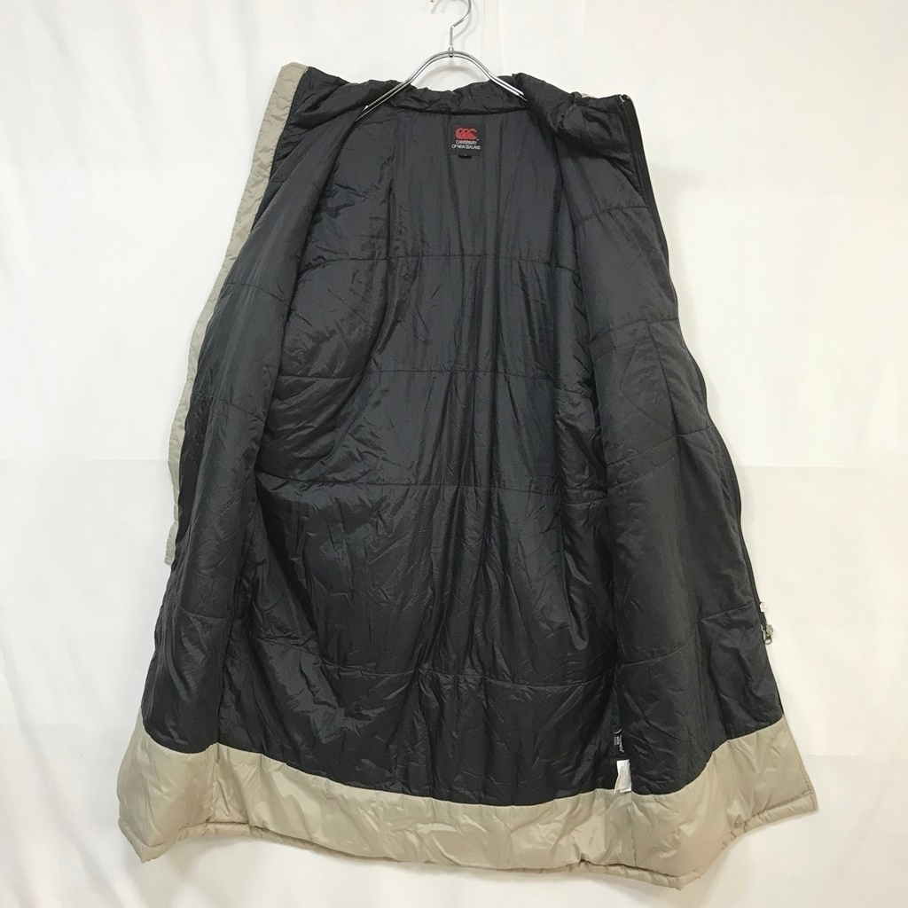 商品: CANTERBURY/カンタベリー ジャンパー ロング丈 中綿コート ベンチコート ナイロンコート ナイロン100% フード付き ロゴマーク ベージュ サイズL