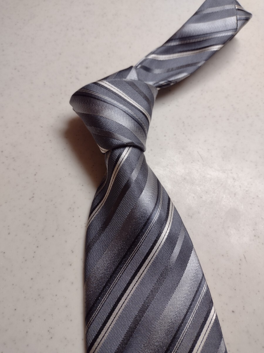 ヒロココシノ ネクタイ グレー シルバー ブリティッシュグラデーション ストライプ レジメンタル