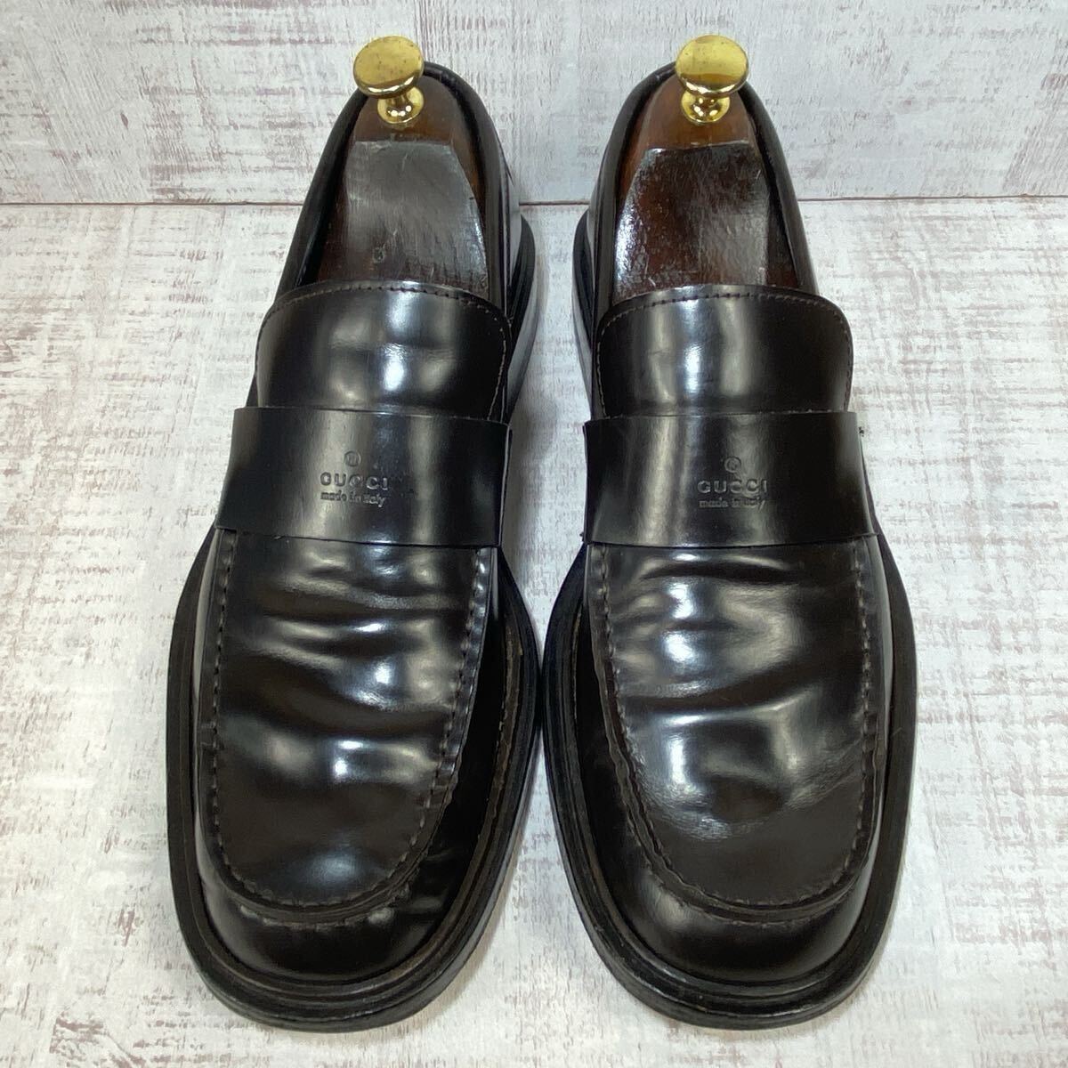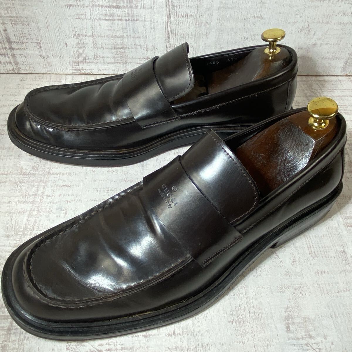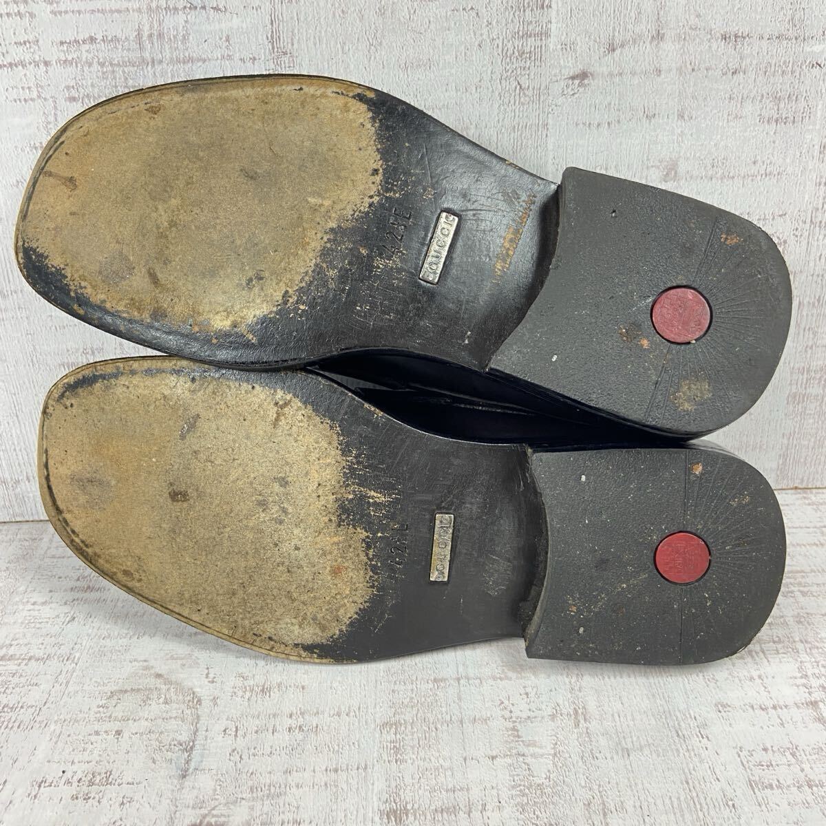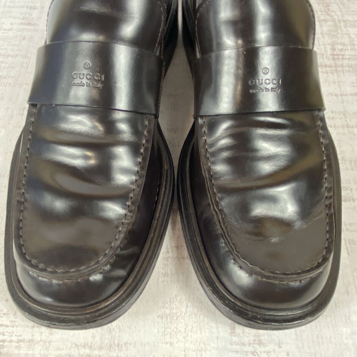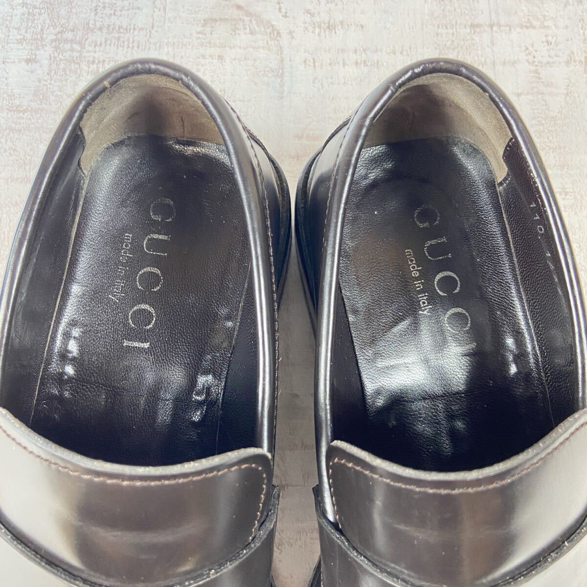 【ブランド名】 GUCCI グッチ ローファー 【カラー】 黒色 ブラック 【素材】 レザー 【サイズ】 42.5E 27.5cm相当 ソール裏全長:約31.5cm ソール幅:約12cm ヒール高さ:約3cm 【購入元】 日本流通自主管理協会加盟店(AACD) ブランドリユース店・古物市場 質屋・ストア商品 鑑定済の正規品です。 ご安心してお買い求め下さいませ。 014-250