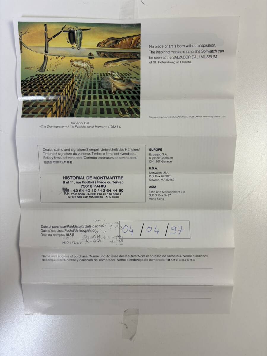 Salvador Dali サルバドールダリ ソフトウォッチ 腕時計 溶ける時計 クォーツ 022146 青文字盤 稼働品 箱付き 購入証明書付き