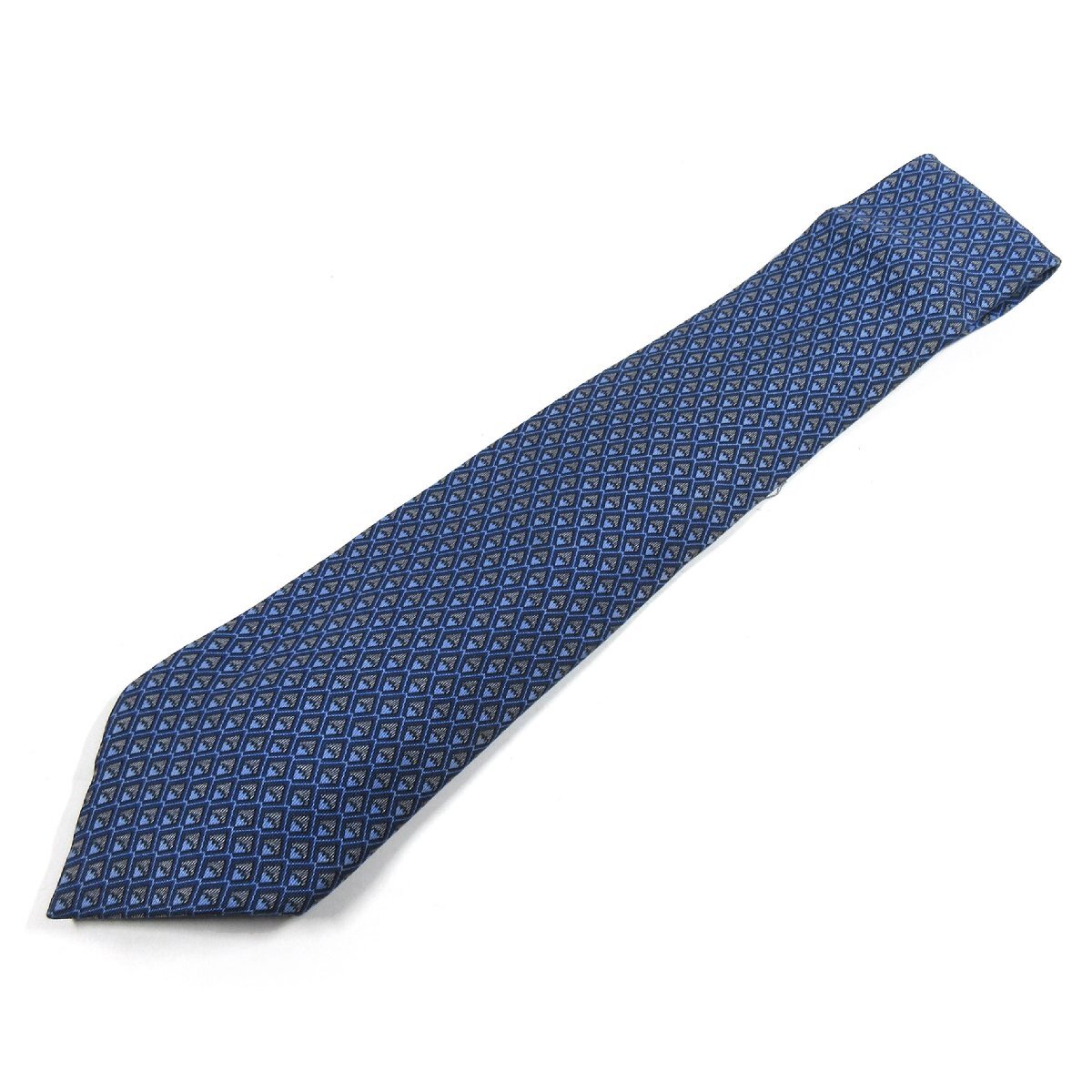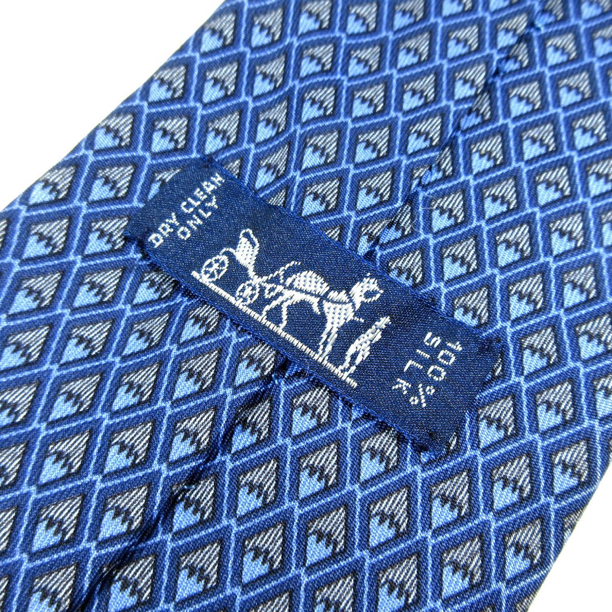 エルメス 799 MA デザイン シルク ネクタイ 剣先9cm ブルー H44